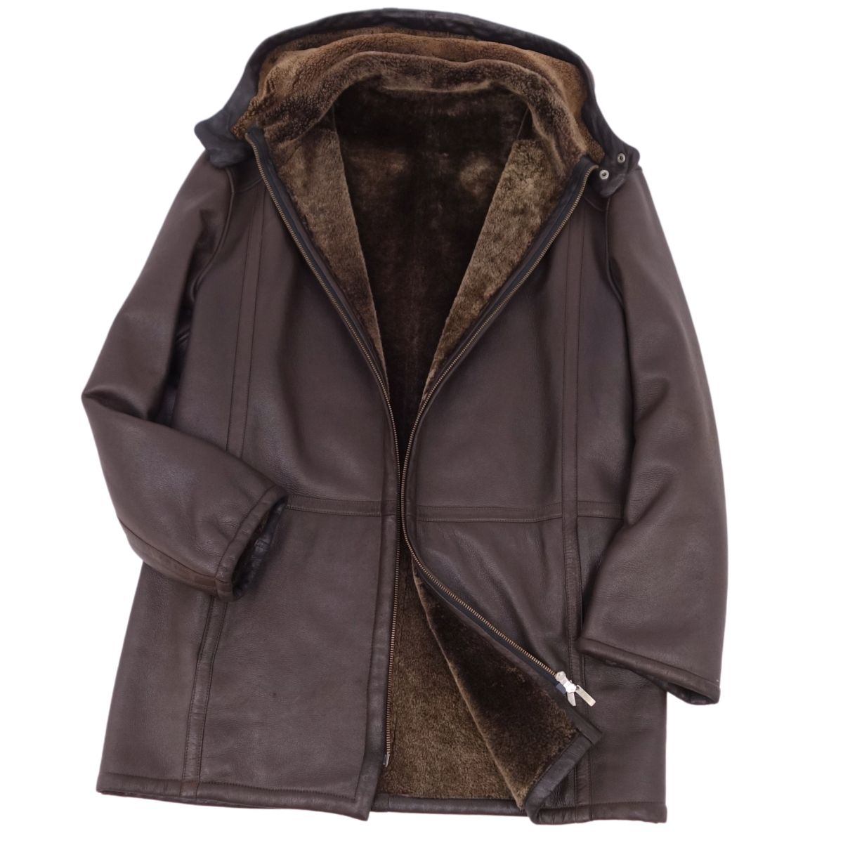 商品名 ロエベ LOEWE コート ムートン 2way ジップアップ フード付き メンズ アウター 50(L相当) ブラウン【中古】