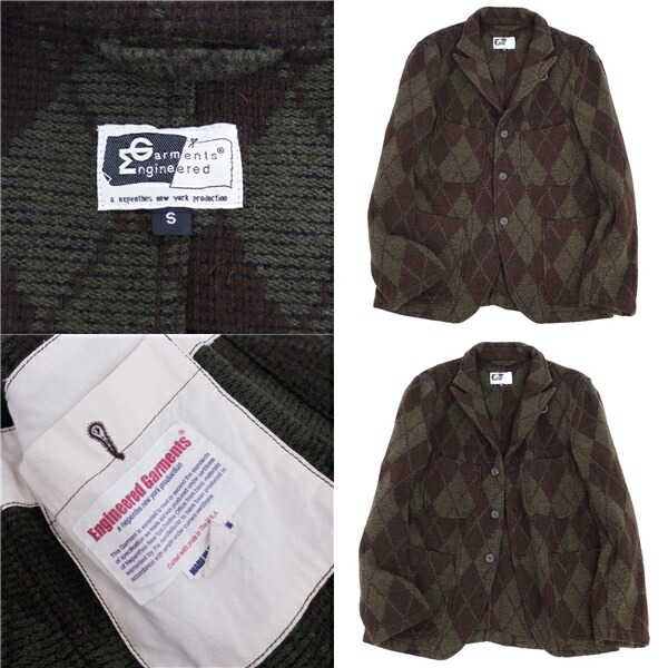 エンジニアードガーメンツ Engineered Garments ジャケット 総柄 ウール ナイロン アウター メンズ アメリカ製 カーキ/ブラウン サイズS