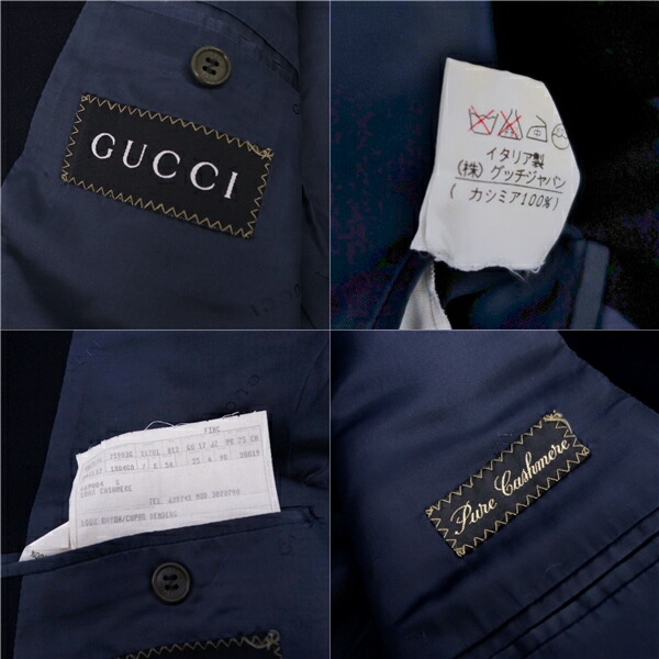 商品名 【美品】グッチ GUCCI ジャケット カシミヤ100% フラノ テーラード シングル 2ボタン メンズ アウター 54(L相当) ネイビー【中古】