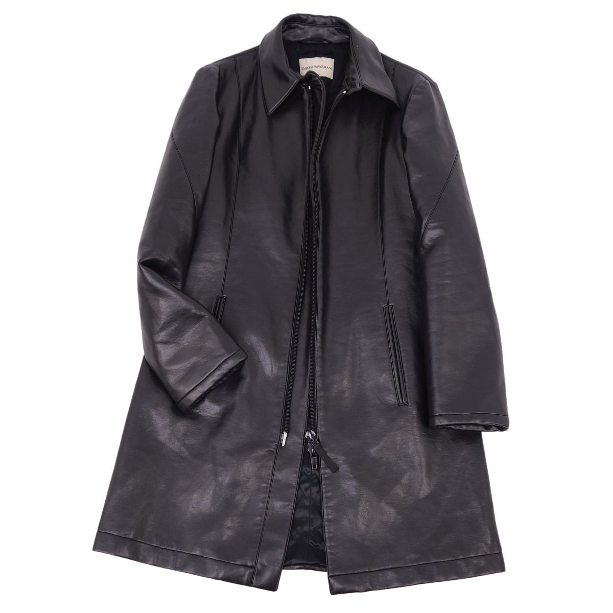 エンポリオアルマーニ EMPORIO ARMANI コート ジップアップ 中綿入り エコレザー メンズ アウター ブラック サイズ48(M相当)