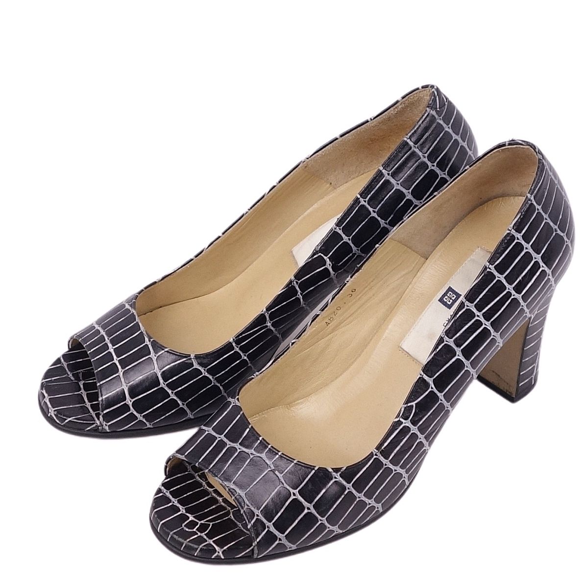 商品名 ジバンシー GIVENCHY クロコ型押し オープントゥ パンプス カーフレザー シューズ レディース 日本製 本革 靴 36(23cm相当) ブラック 黒【中古】