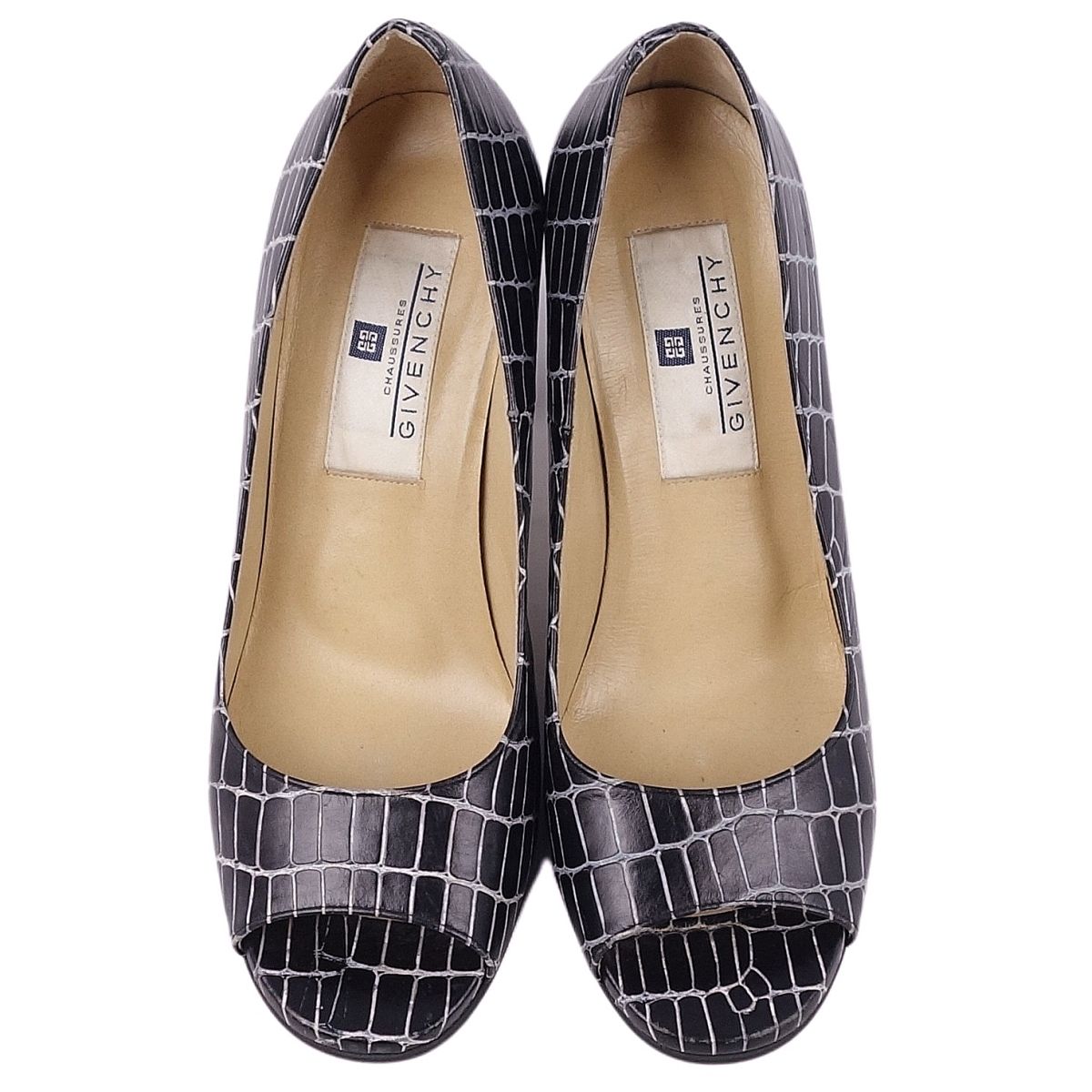 ジバンシー GIVENCHY クロコ型押し オープントゥ パンプス カーフレザー シューズ レディース 日本製 本革 靴 36(23cm相当) ブラック 黒【中古】