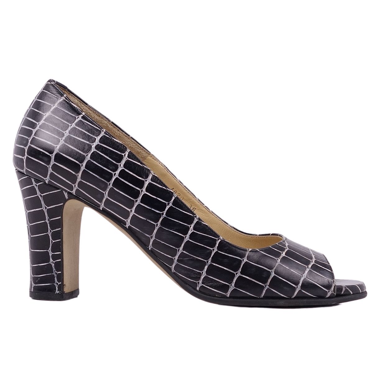 ジバンシー GIVENCHY クロコ型押し オープントゥ パンプス カーフレザー シューズ レディース 日本製 本革 靴 ブラック 黒 サイズ36(23cm相当)
