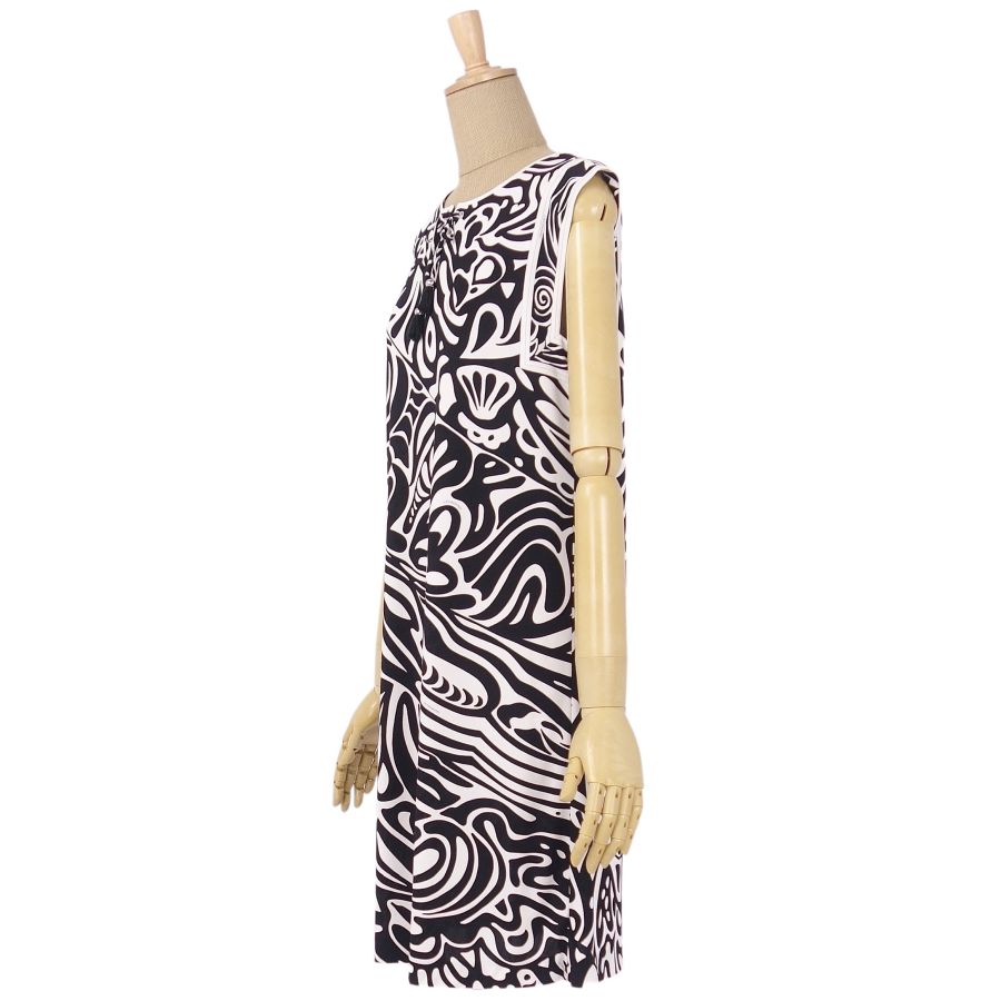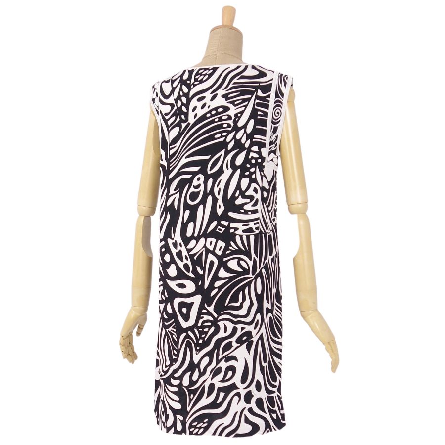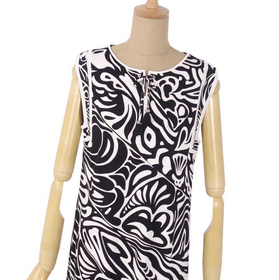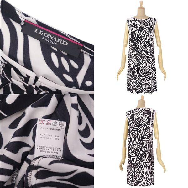 レオナール LEONARD FASHION 総柄 ノースリーブ ジャージー ワンピース 2 トップス レディース ブラック/ホワイト サイズ2(M相当)
