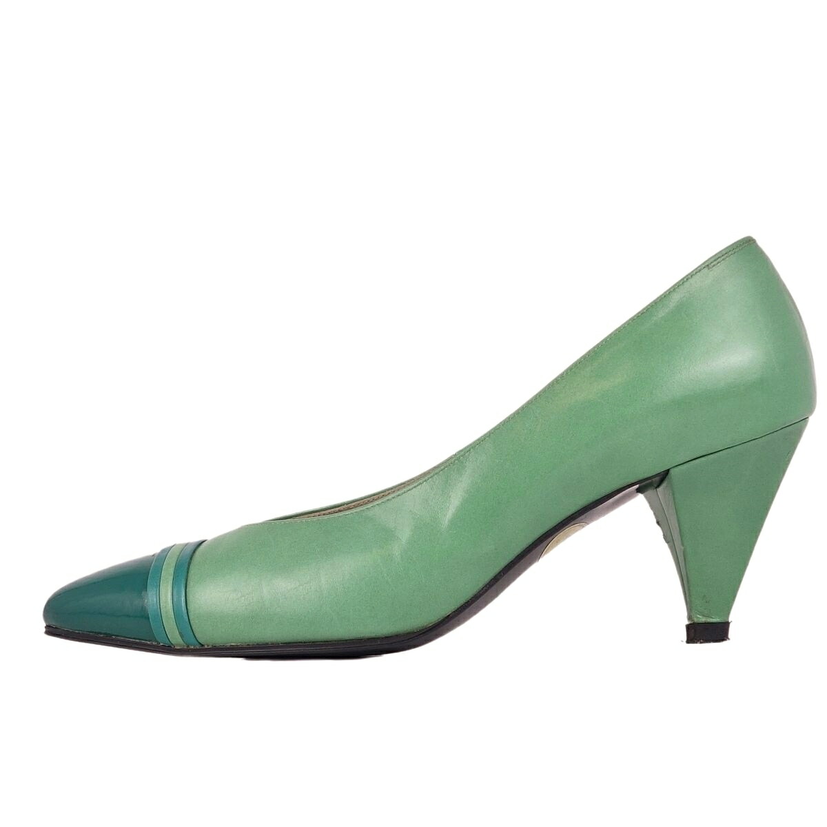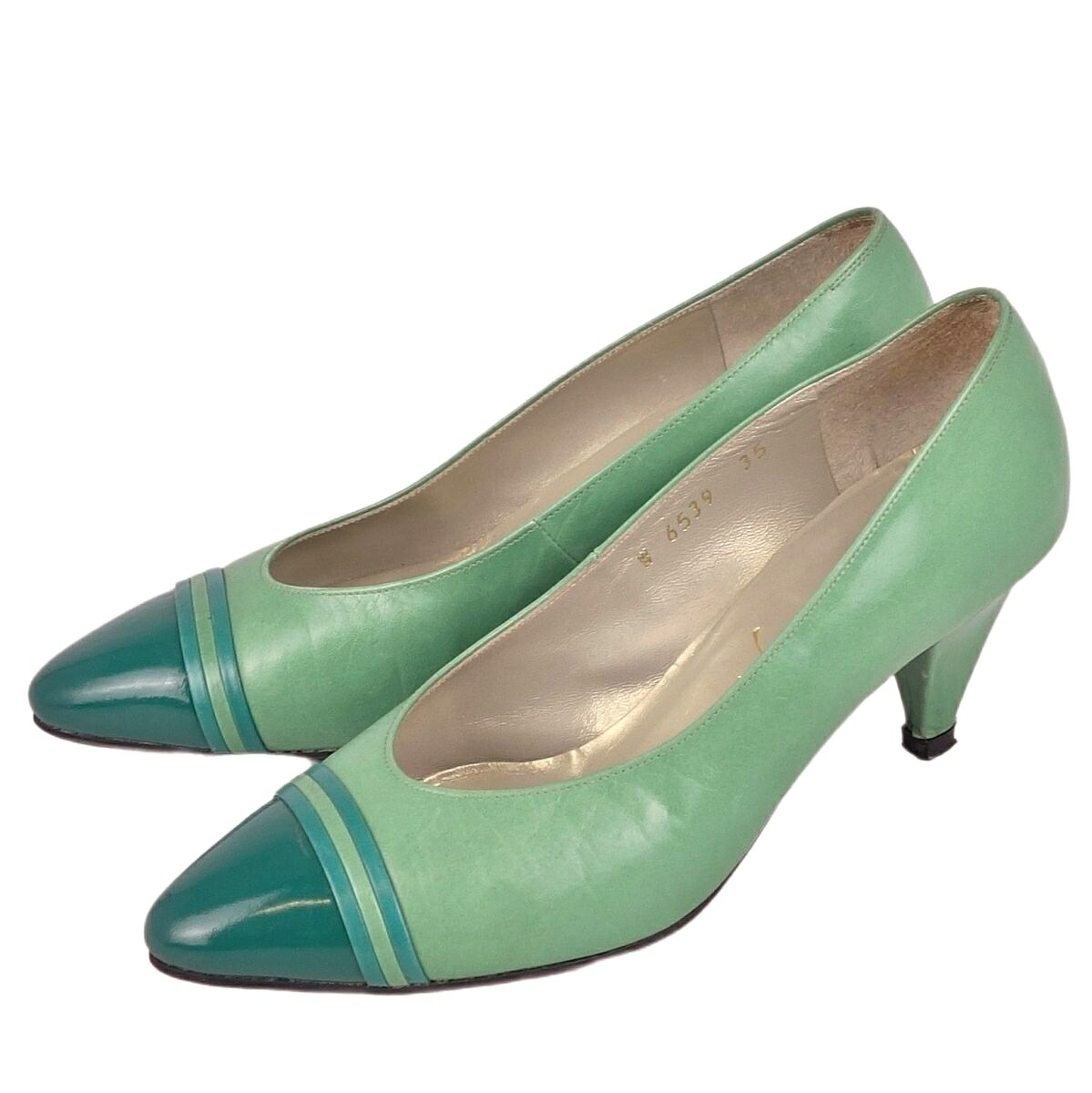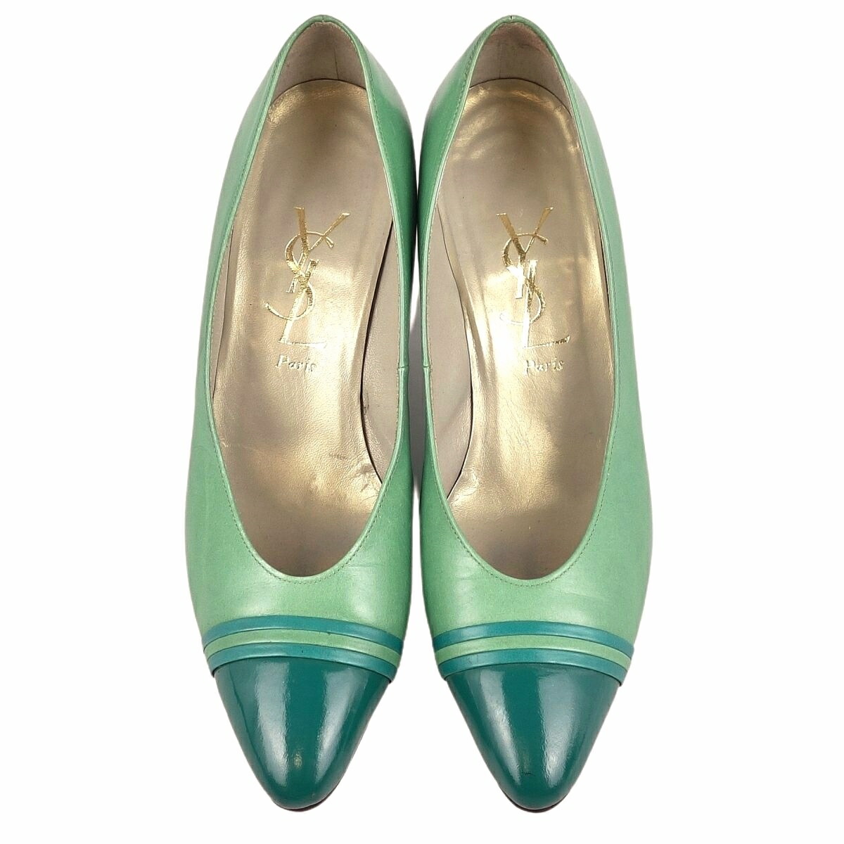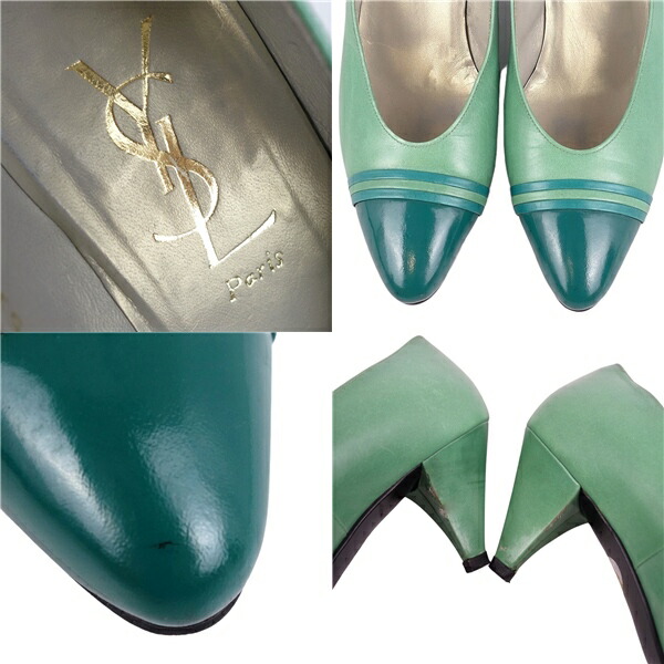 Vintage イヴサンローラン Yves Saint Laurent Vintage パンプス カーフレザー パテント バイカラー シューズ レディース グリーン サイズ35(22cm相当)