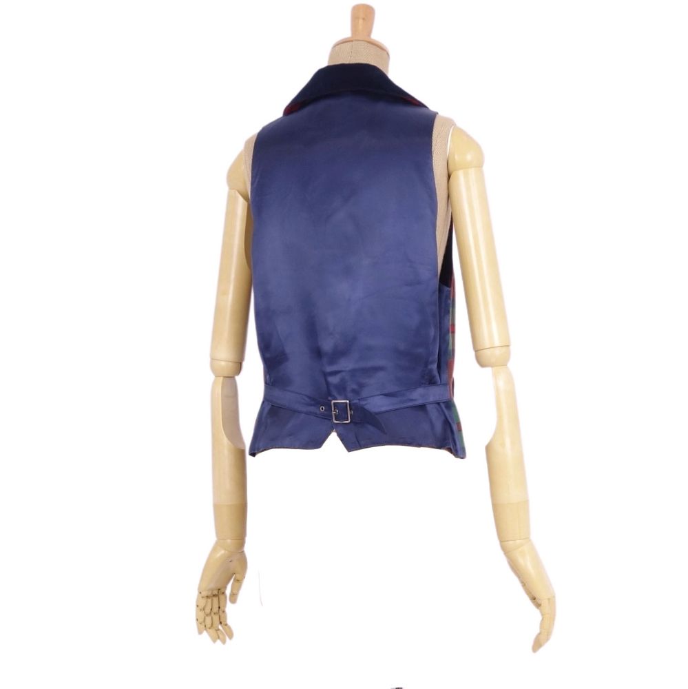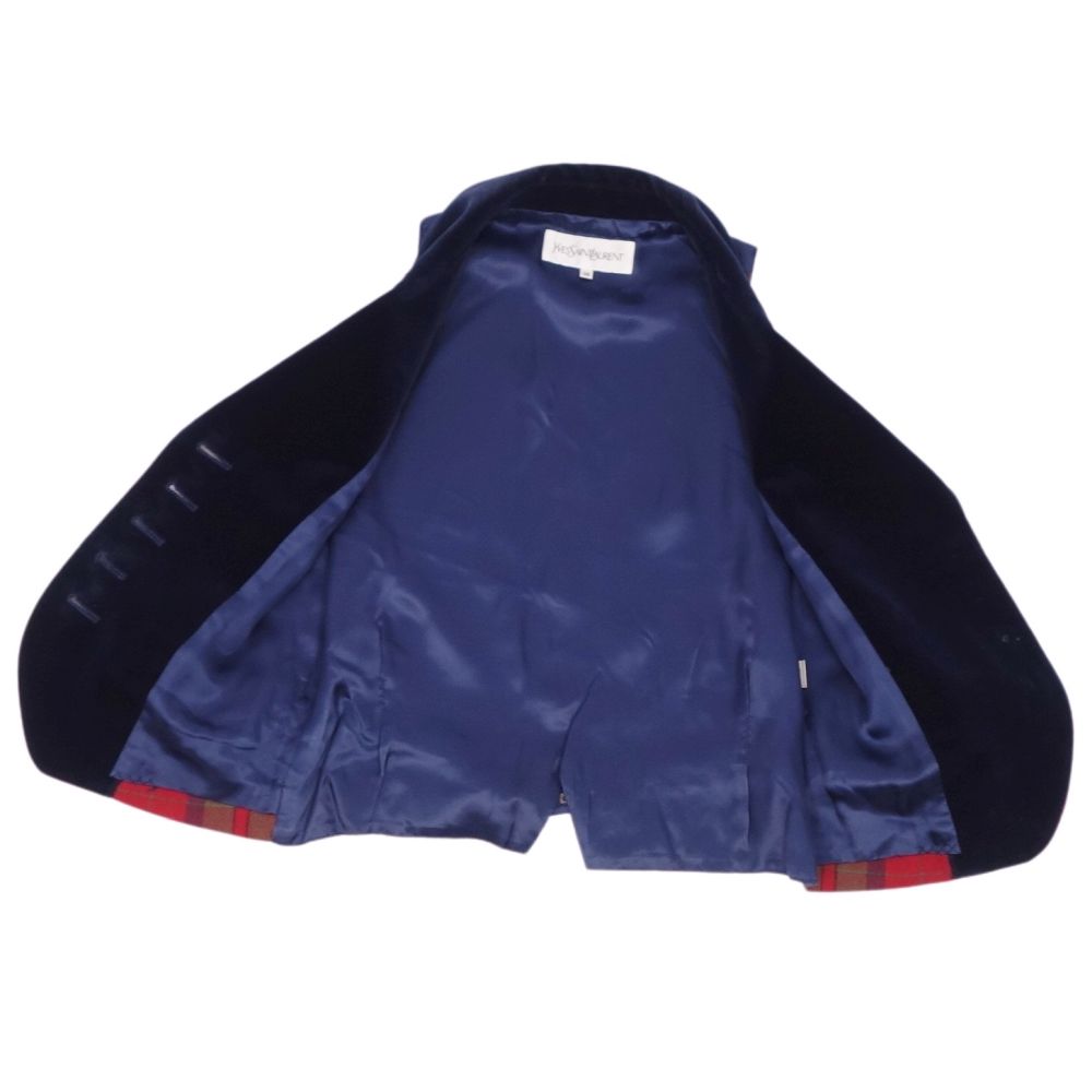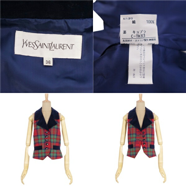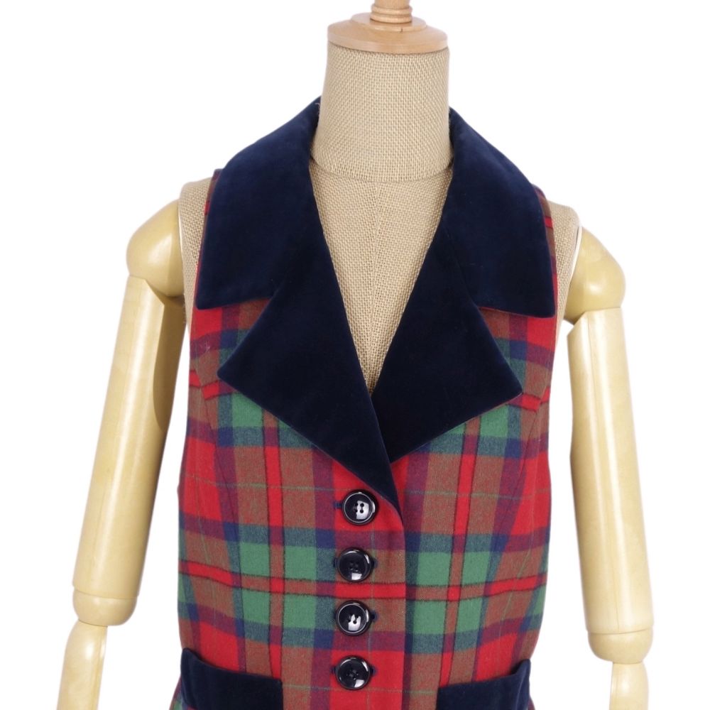 Vintage イヴサンローラン Yves Saint Laurent ベスト ベロア チェック ウール 36 レッド レディース トップス レッド/ネイビー サイズ36(S相当)
