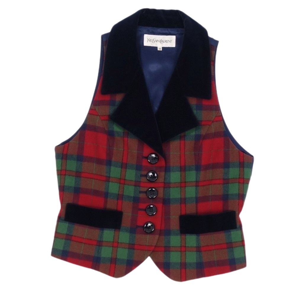 | 商品名 | 【美品】Vintage イヴサンローラン Yves Saint Laurent ベスト ベロア チェック ウール 36 レッド レディース トップス ヴィンテージ ビンテージ【中古】 |