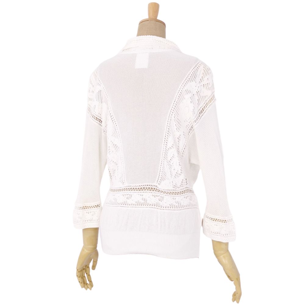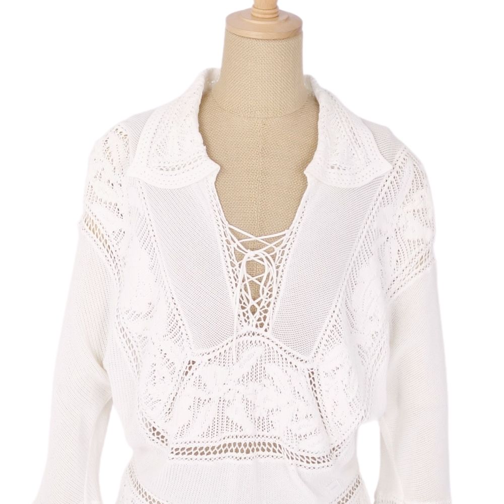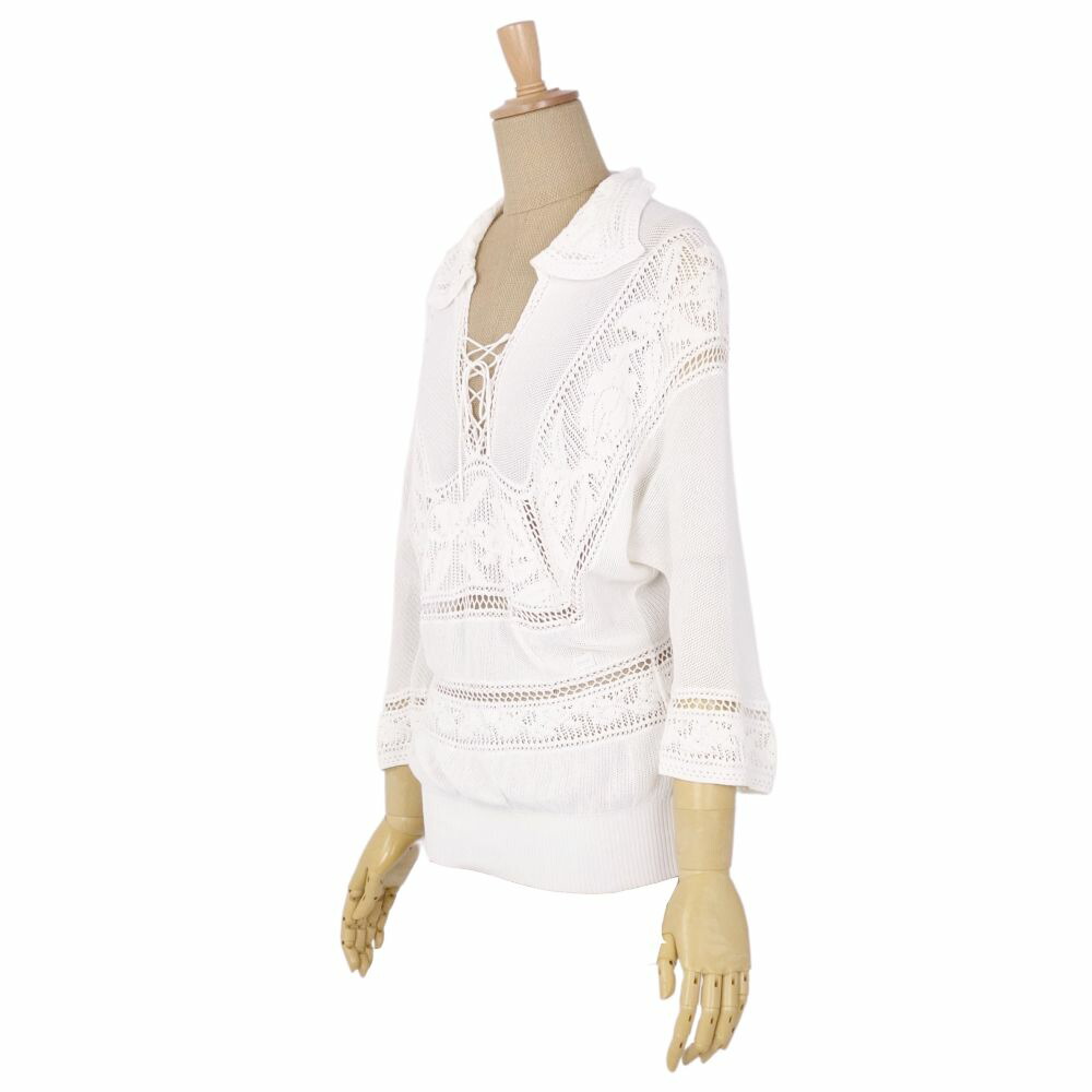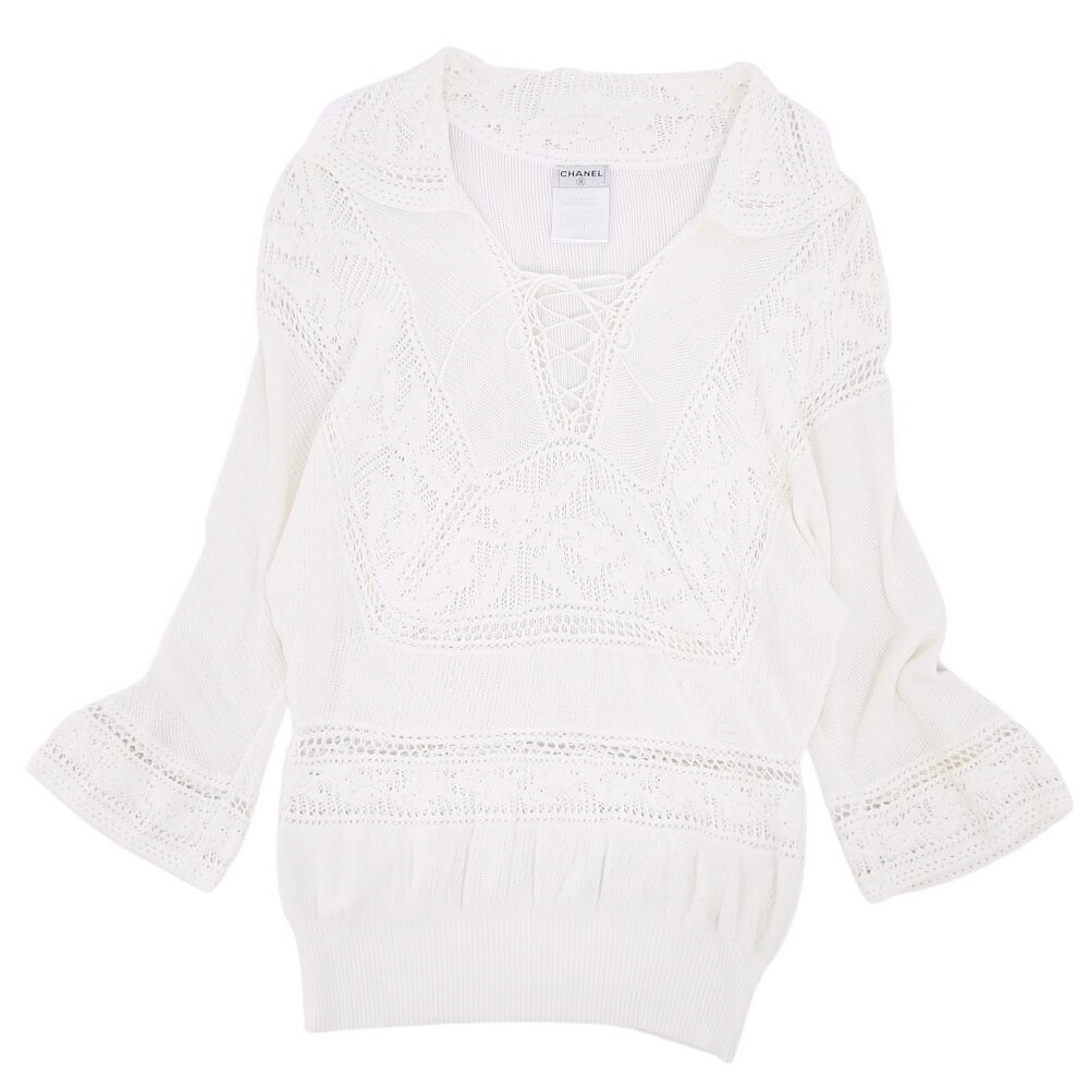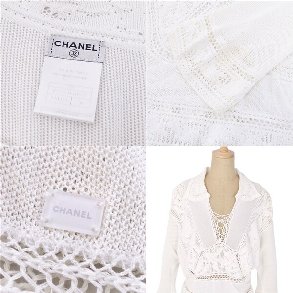 シャネル CHANEL 05P レースアップ ニット ブラウス シースルー 36 ホワイト レディース トップス ホワイト サイズ36(S相当)