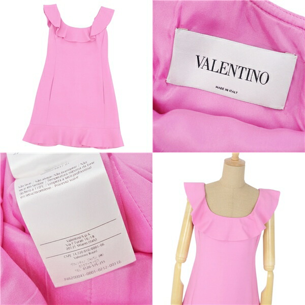 ヴァレンティノ VALENTINO フリル フレア ワンピース ドレス ノースリーブ イタリア製 レディース ピンク サイズ40(M相当)