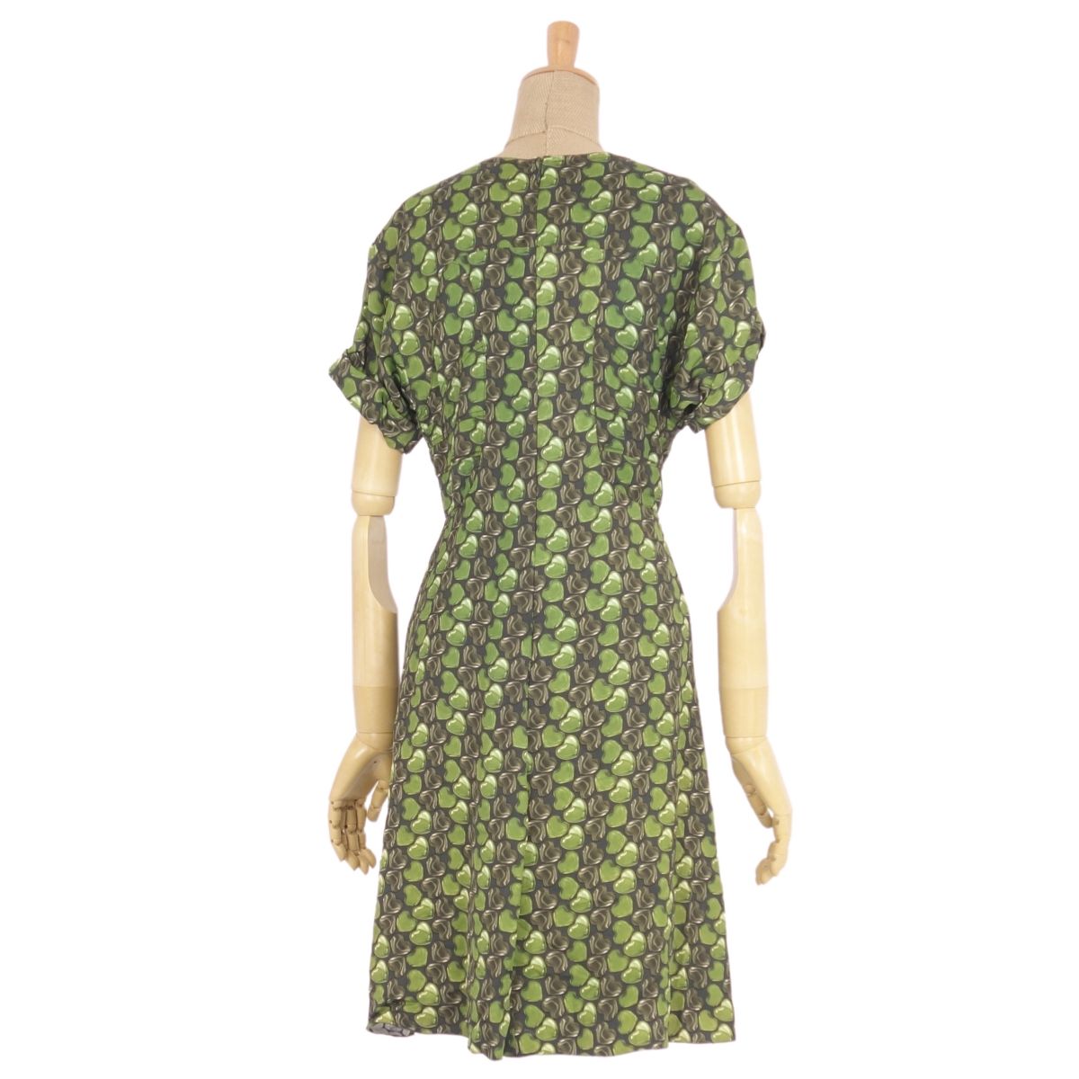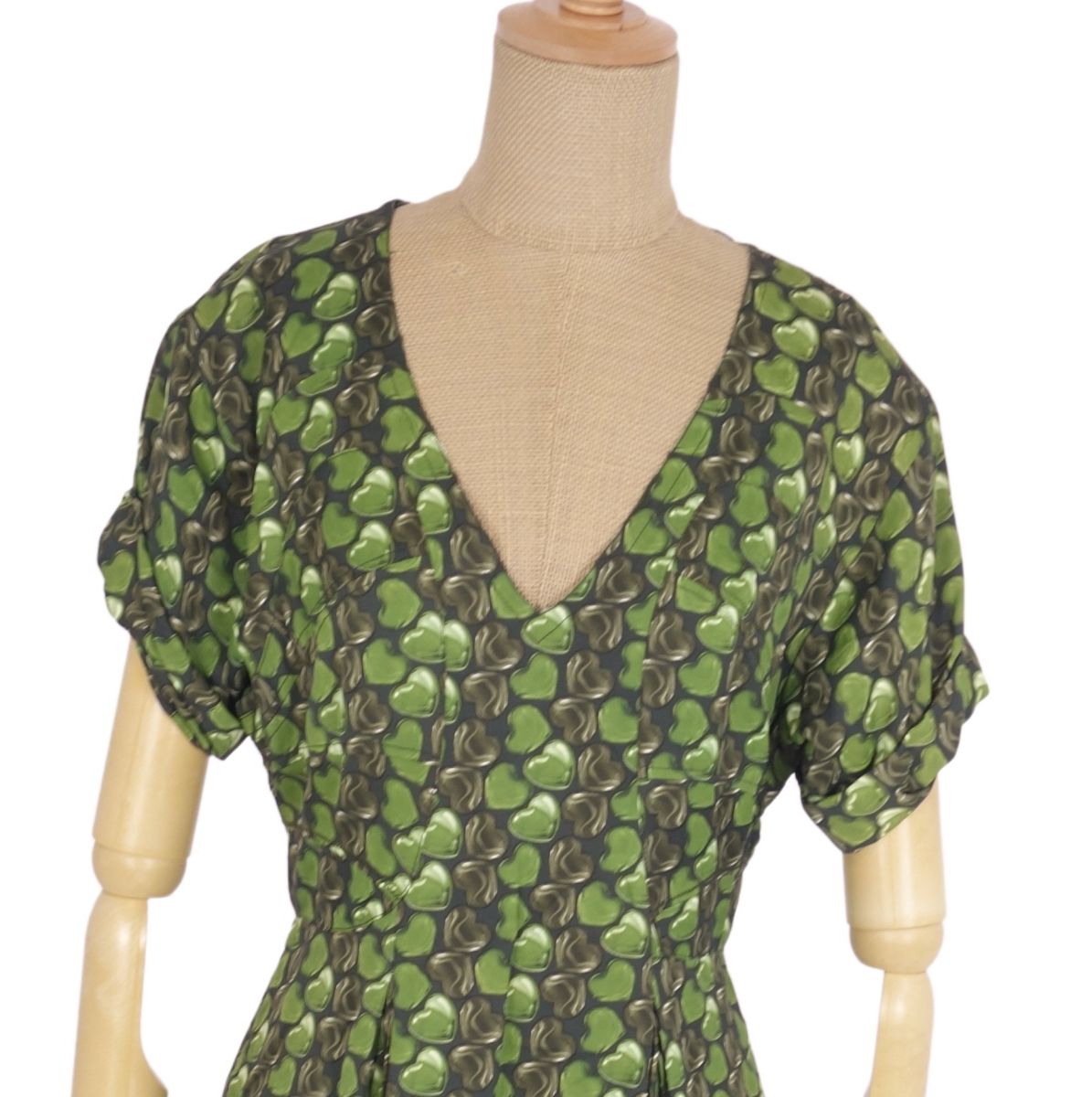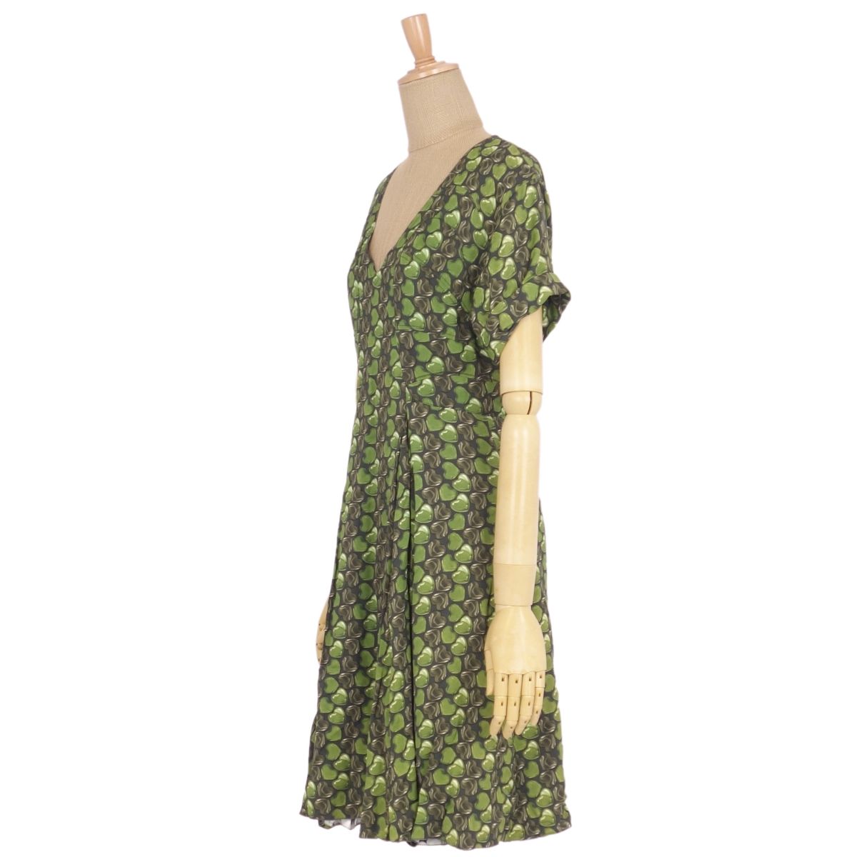 プラダ PRADA 半袖 ワンピース トップス 総柄 ハート柄 レディース グリーン サイズ38(Mサイズ相当)