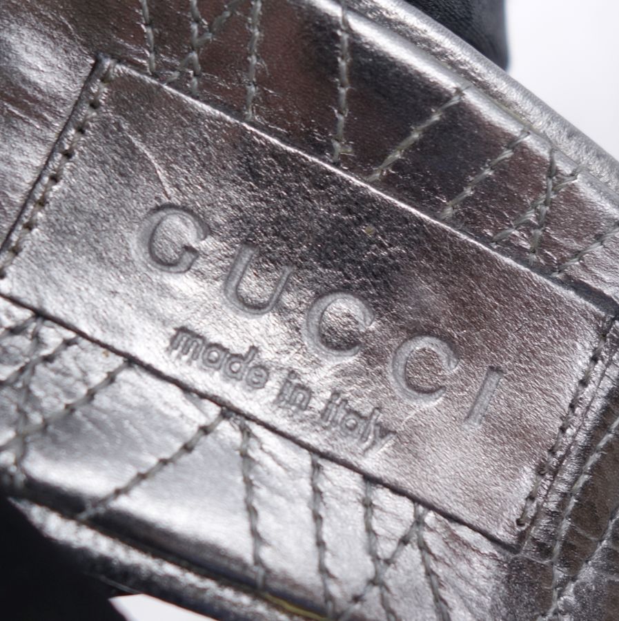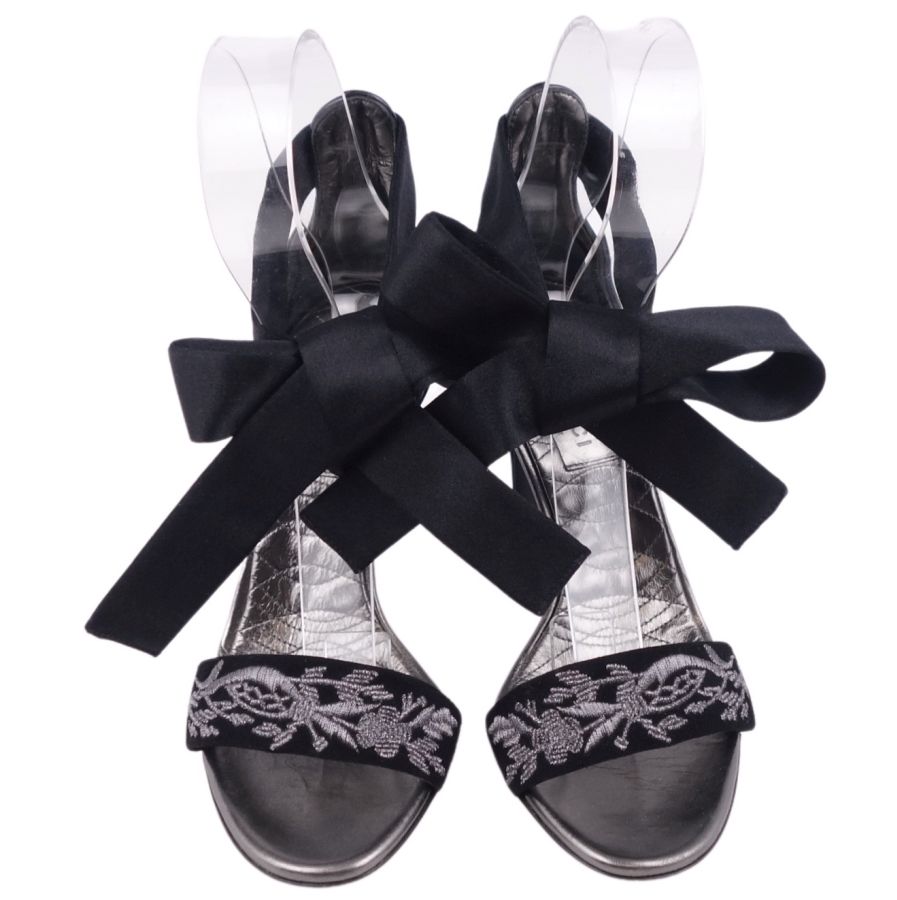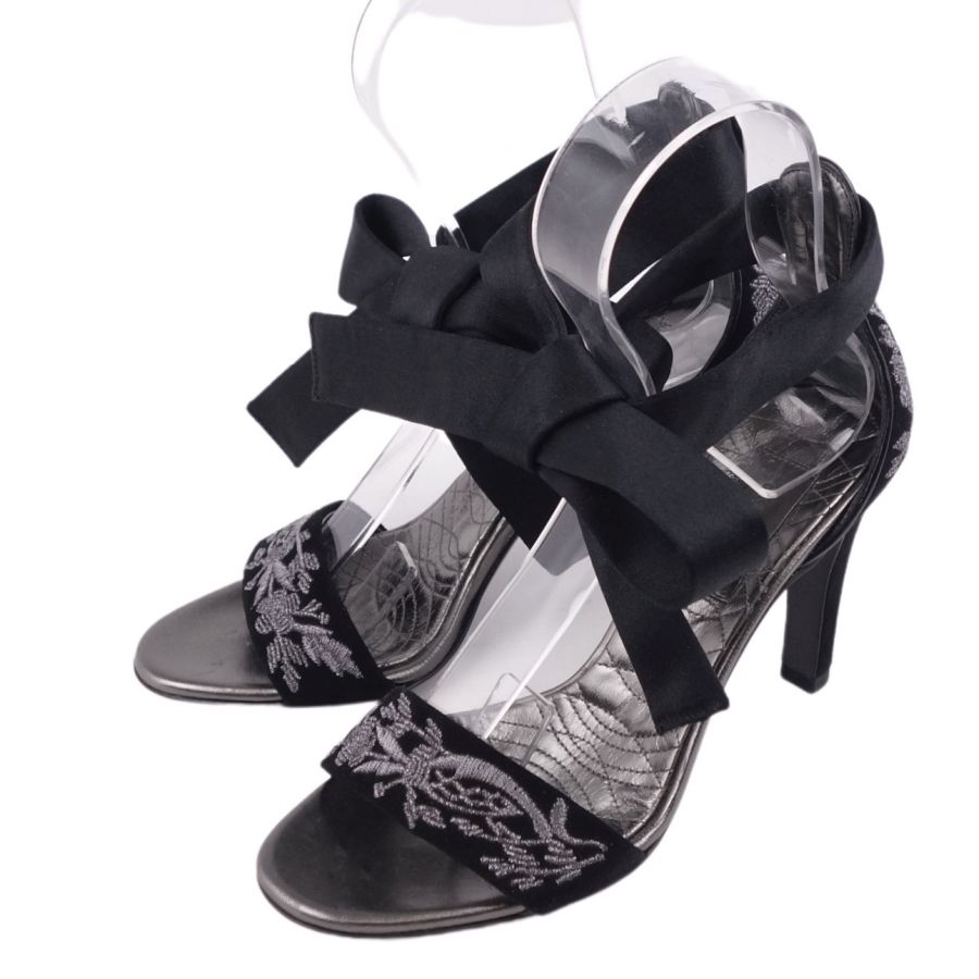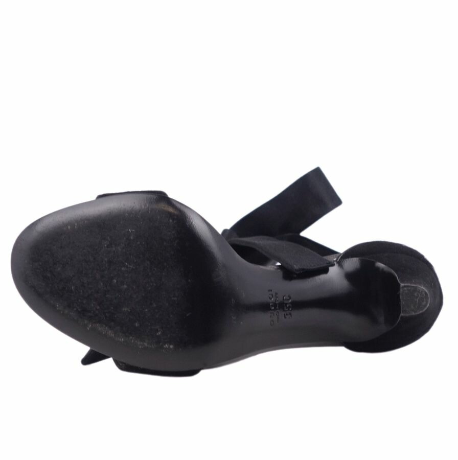 グッチ GUCCI サンダル レースアップ スウェード サテン ヒール シューズ 靴 レディース ブラック サイズ35C(22cm相当)
