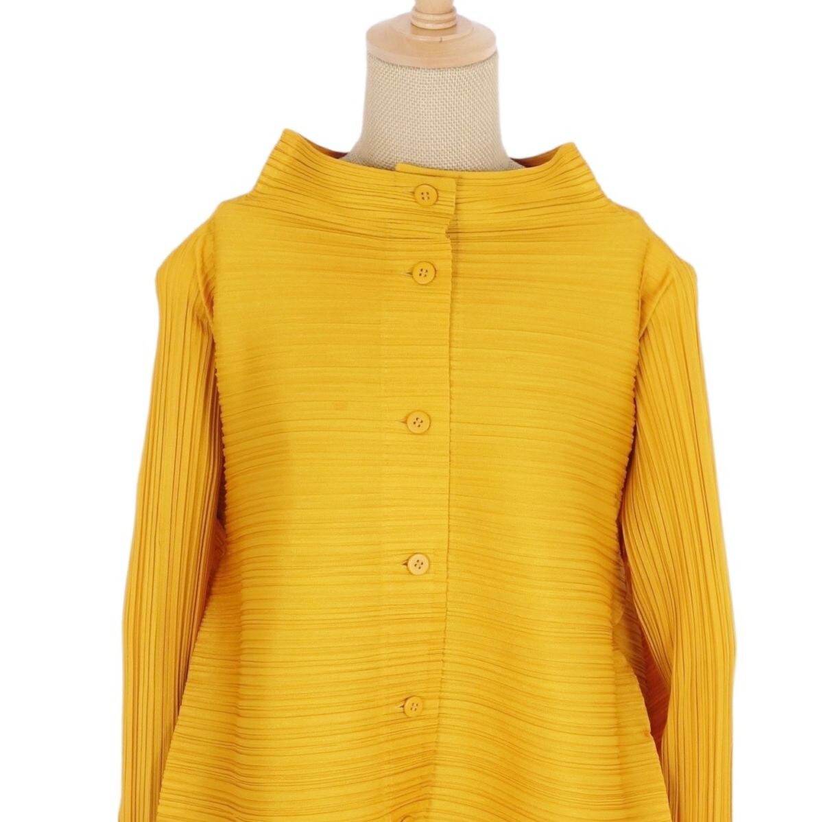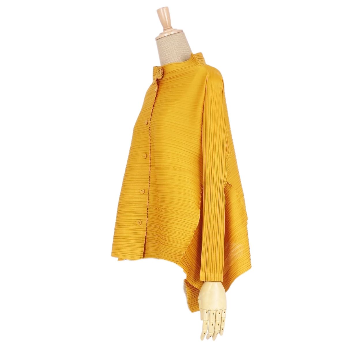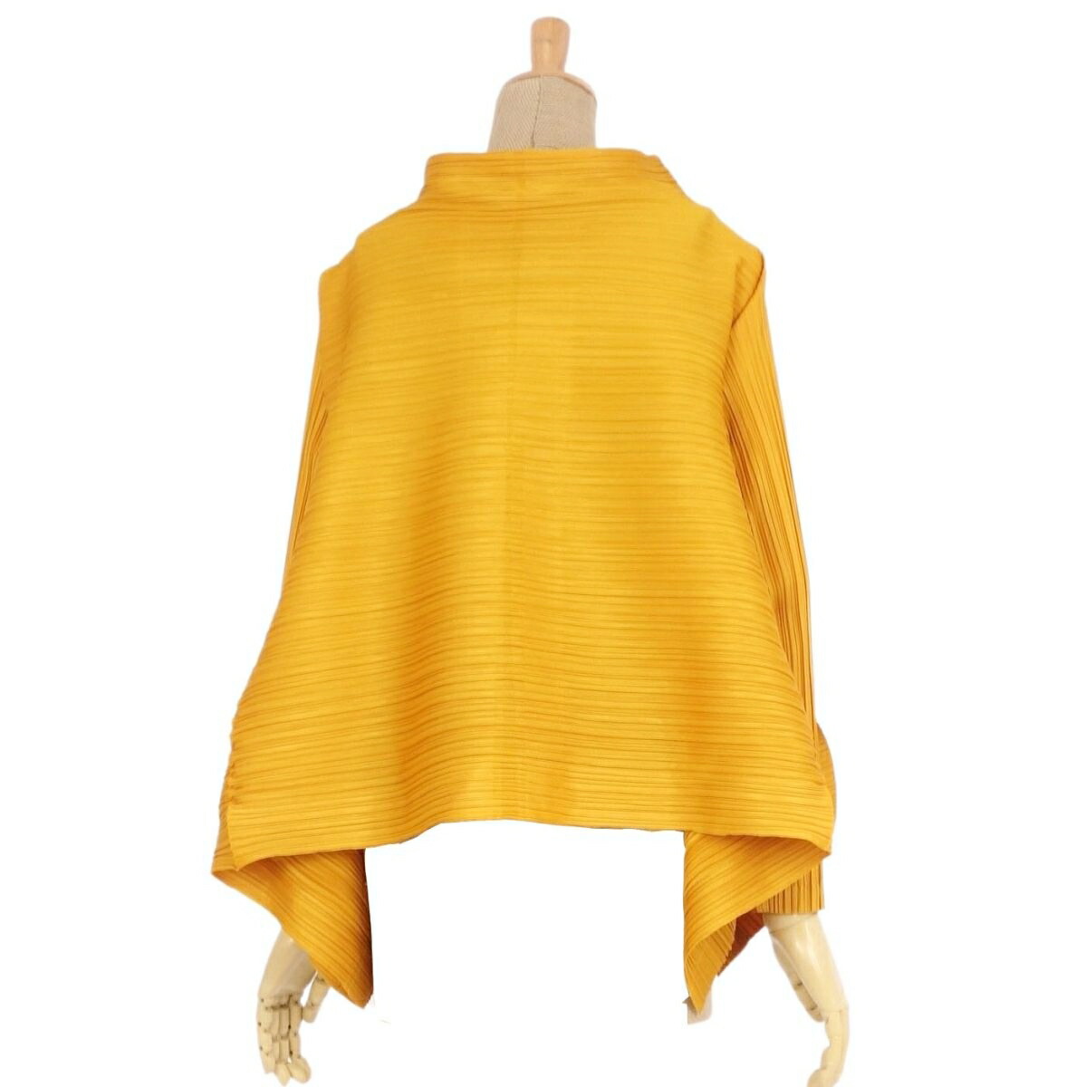 プリーツプリーズ イッセイミヤケ PLEATS PLEASE ISSEY MIYAKE カーディガン ブラウス シャツ プリーツ ハイネック トップス レディース 日本製 無地 イエロー サイズ3(L相当)