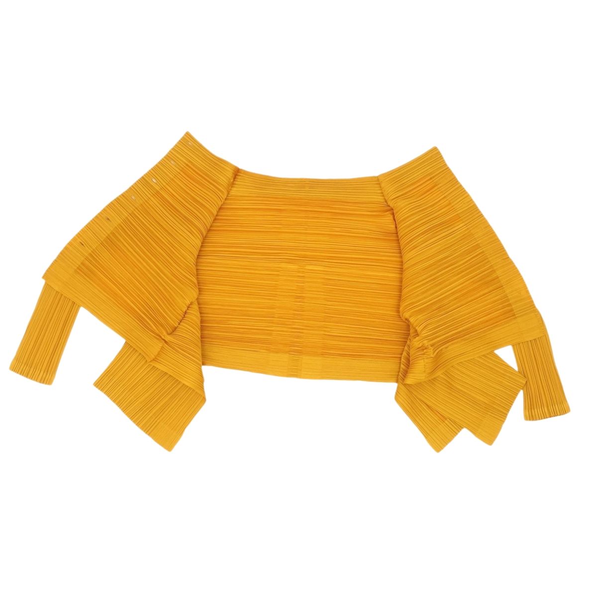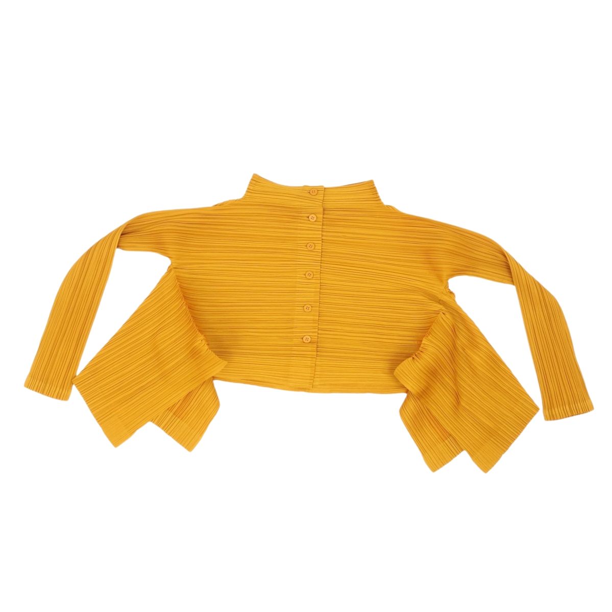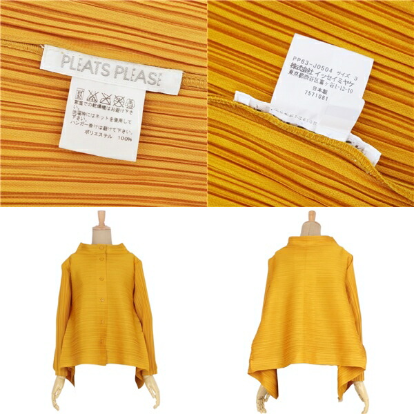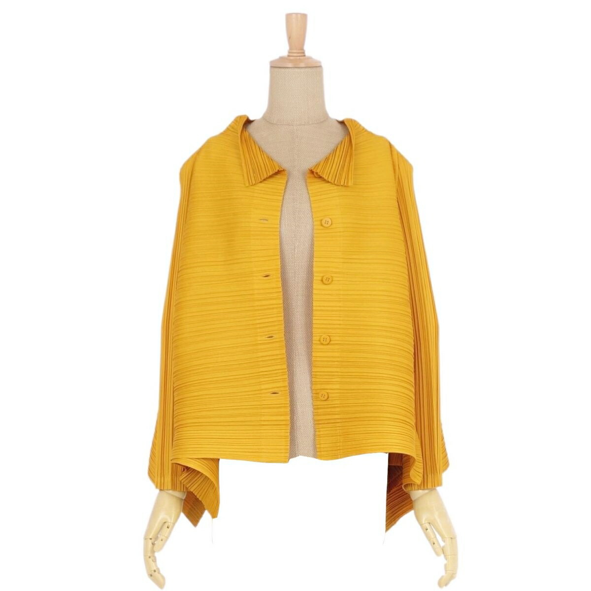 プリーツプリーズ イッセイミヤケ PLEATS PLEASE ISSEY MIYAKE カーディガン ブラウス シャツ プリーツ ハイネック トップス レディース 日本製 無地 イエロー サイズ3(L相当)