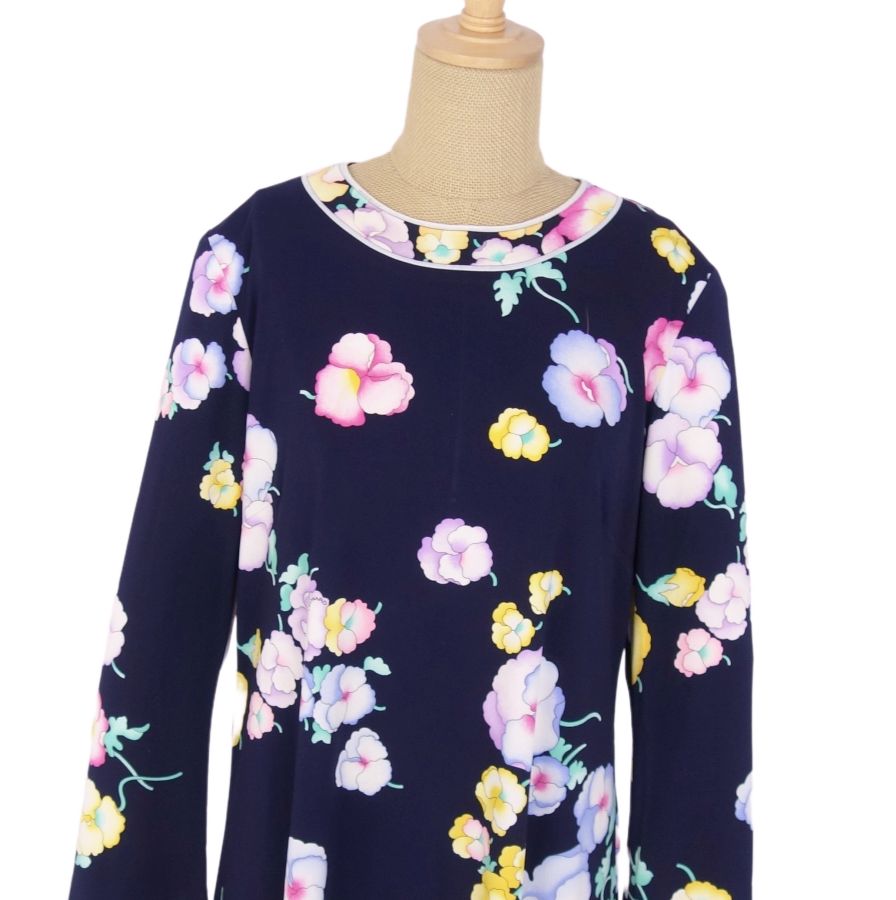 商品名 レオナール LEONARD FASHION ワンピース 総柄 花柄 ジャージー トップス レディース L ネイビー(マルチカラー)【中古】