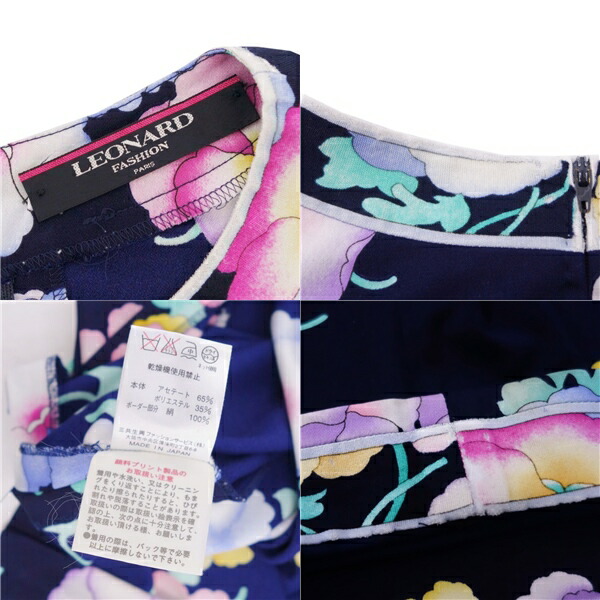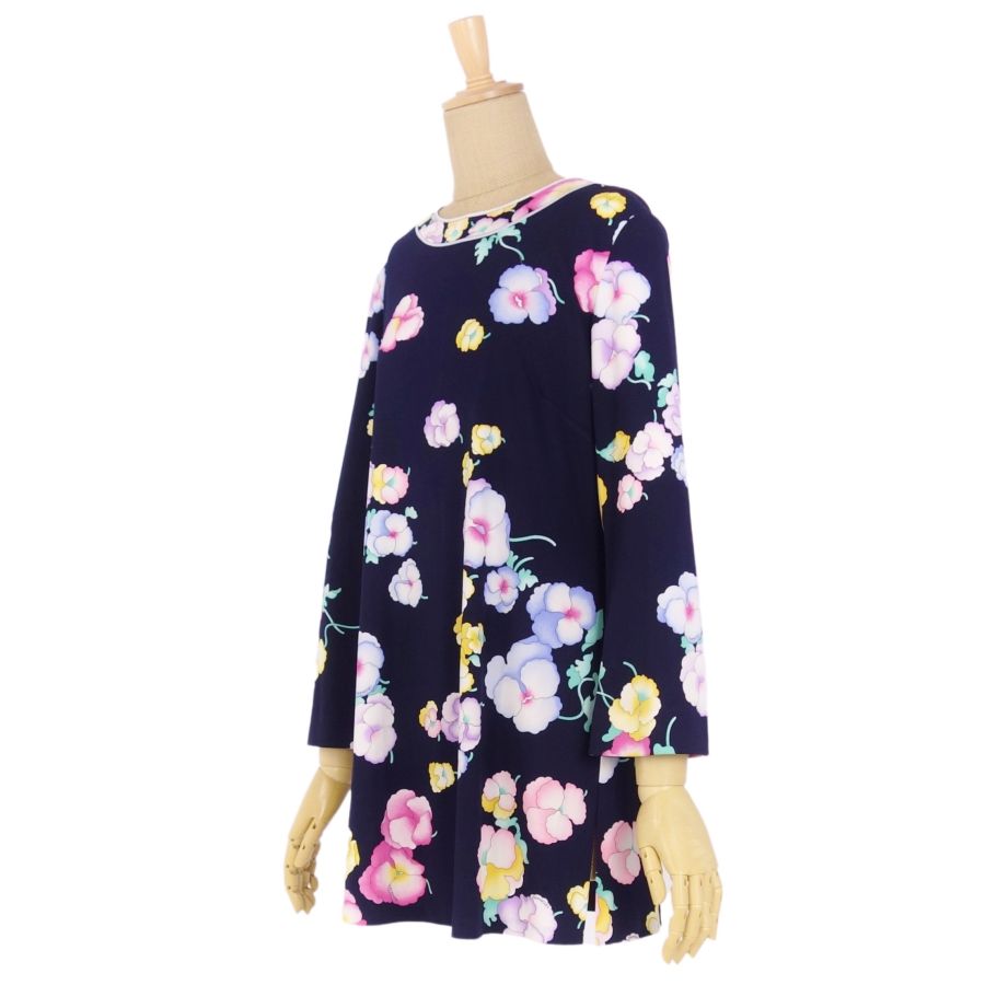 レオナール LEONARD FASHION ワンピース 総柄 花柄 ジャージー トップス レディース L ネイビー(マルチカラー)【中古】