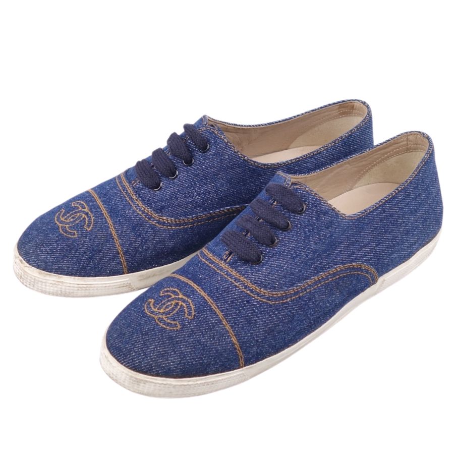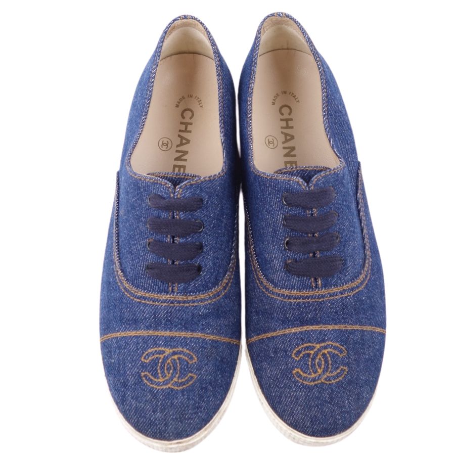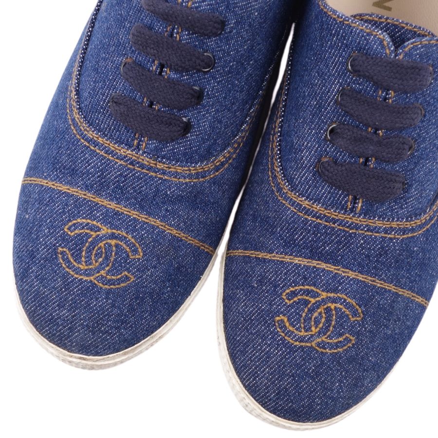シャネル CHANEL スニーカー ローカット デニム ココマーク シューズ 靴 レディース イタリア製 インディゴブルー サイズ37