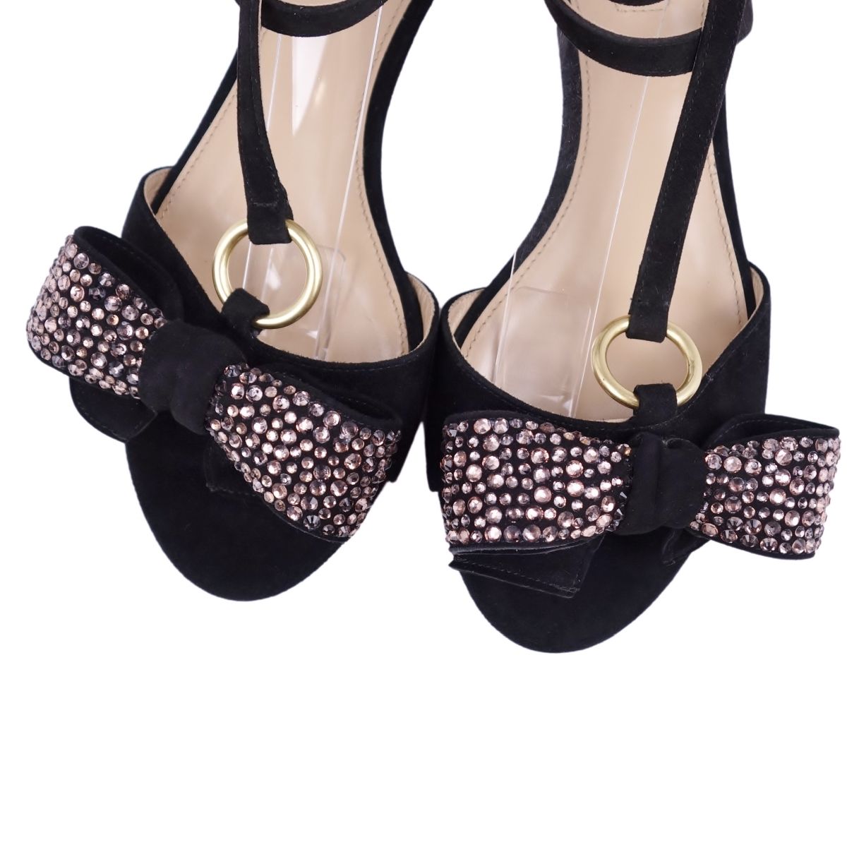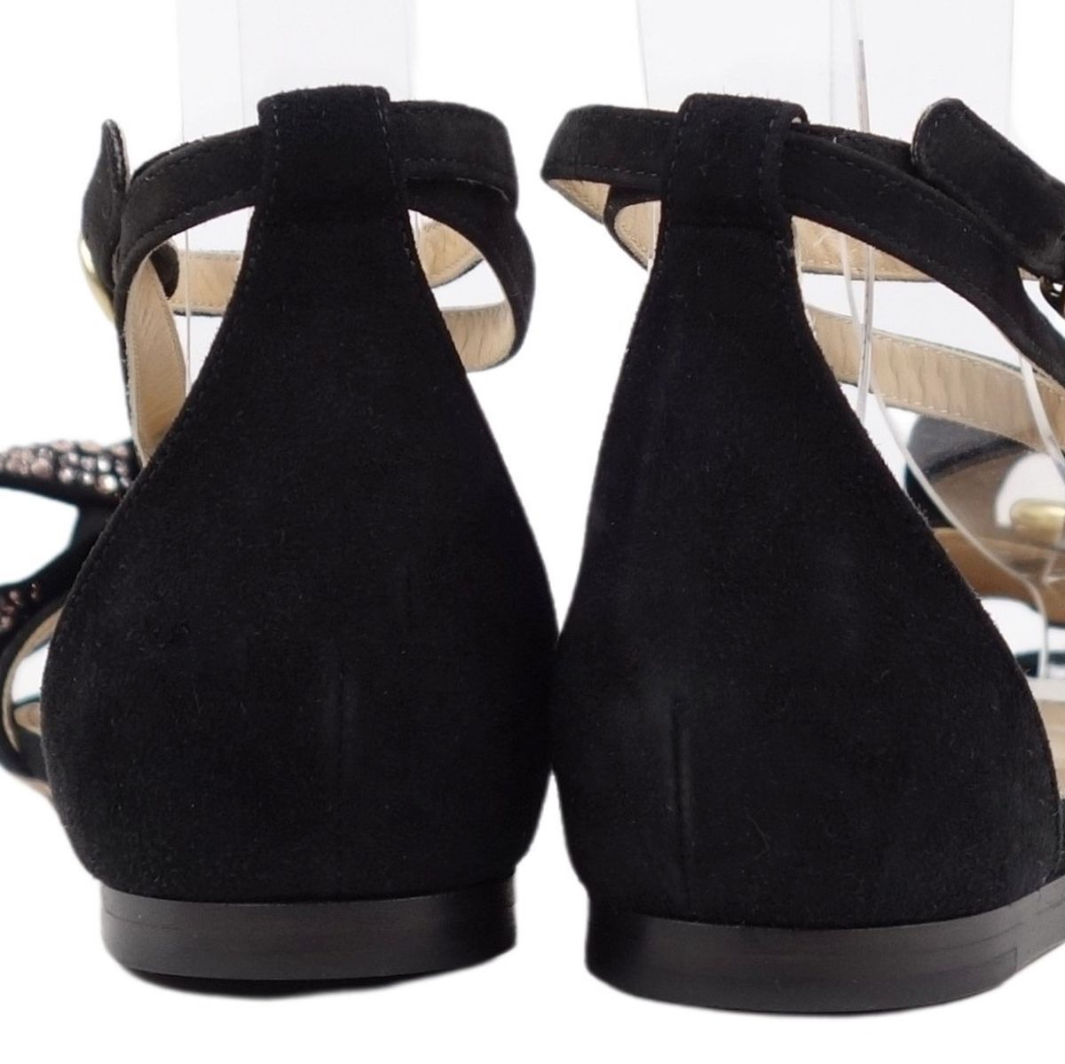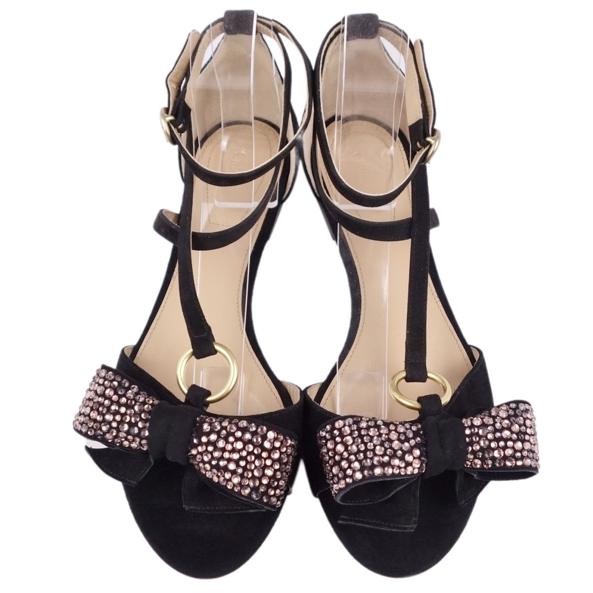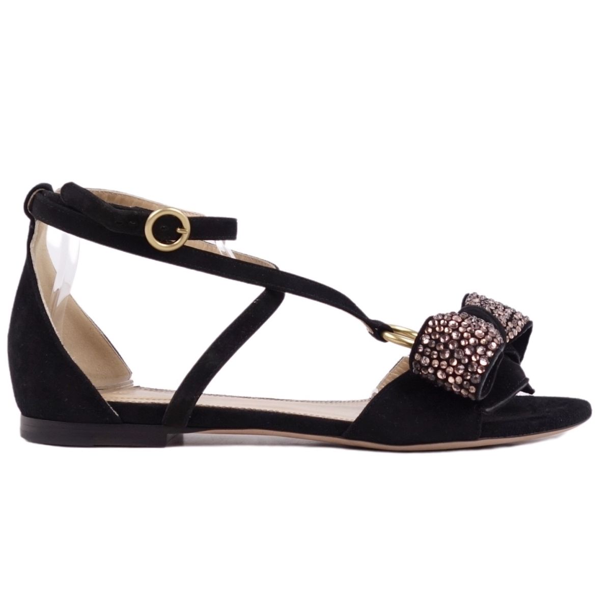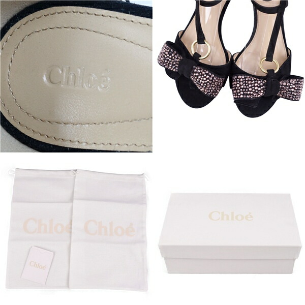 クロエ Chloe サンダル リボン アンクルストラップ フラットサンダル レディース スウェード レザー ビジュー イタリア製 ブラック 黒 サイズ37(24cm相当)