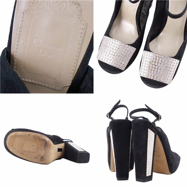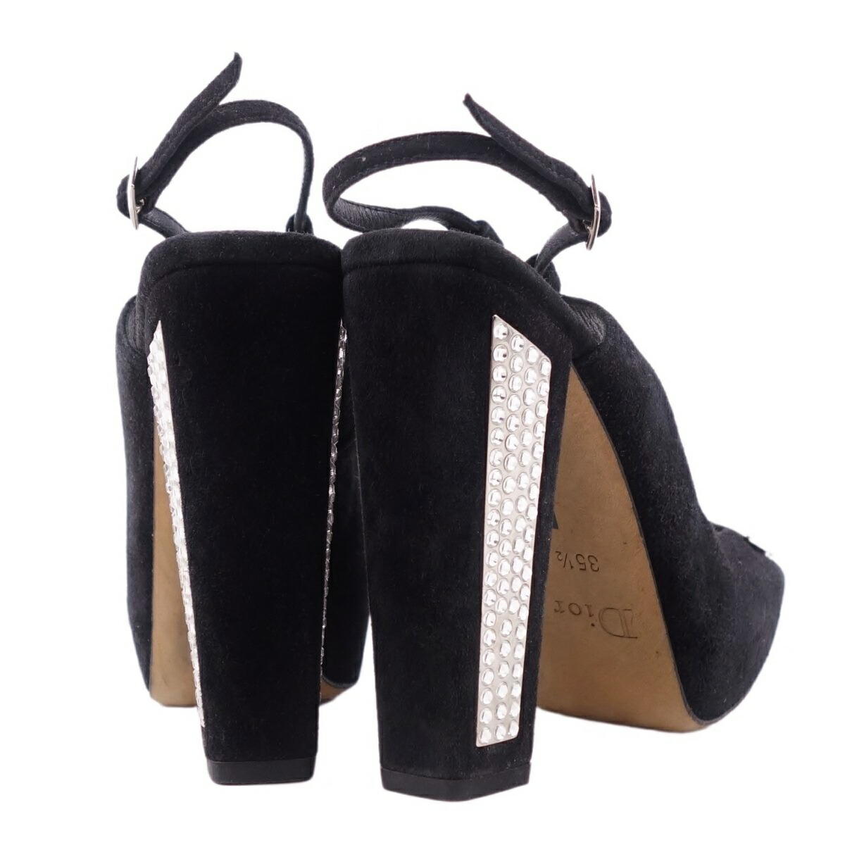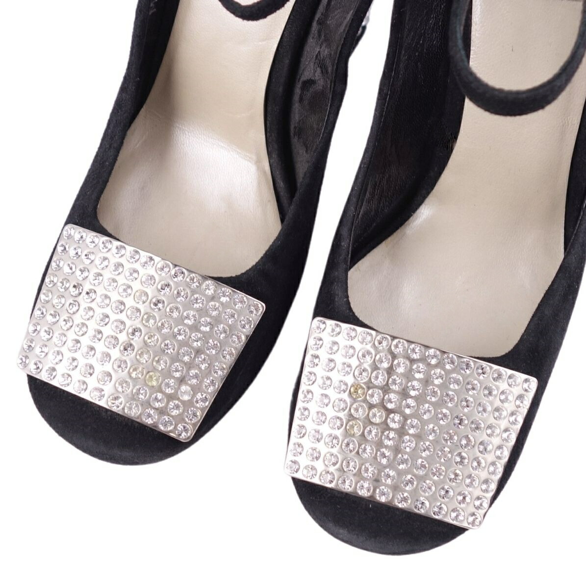 クリスチャンディオール Christian Dior パンプス プラットフォーム スウェード レザー ラインストーン レディース ヒール シューズ ブラック 黒 サイズ35.5(22.5cm相当)