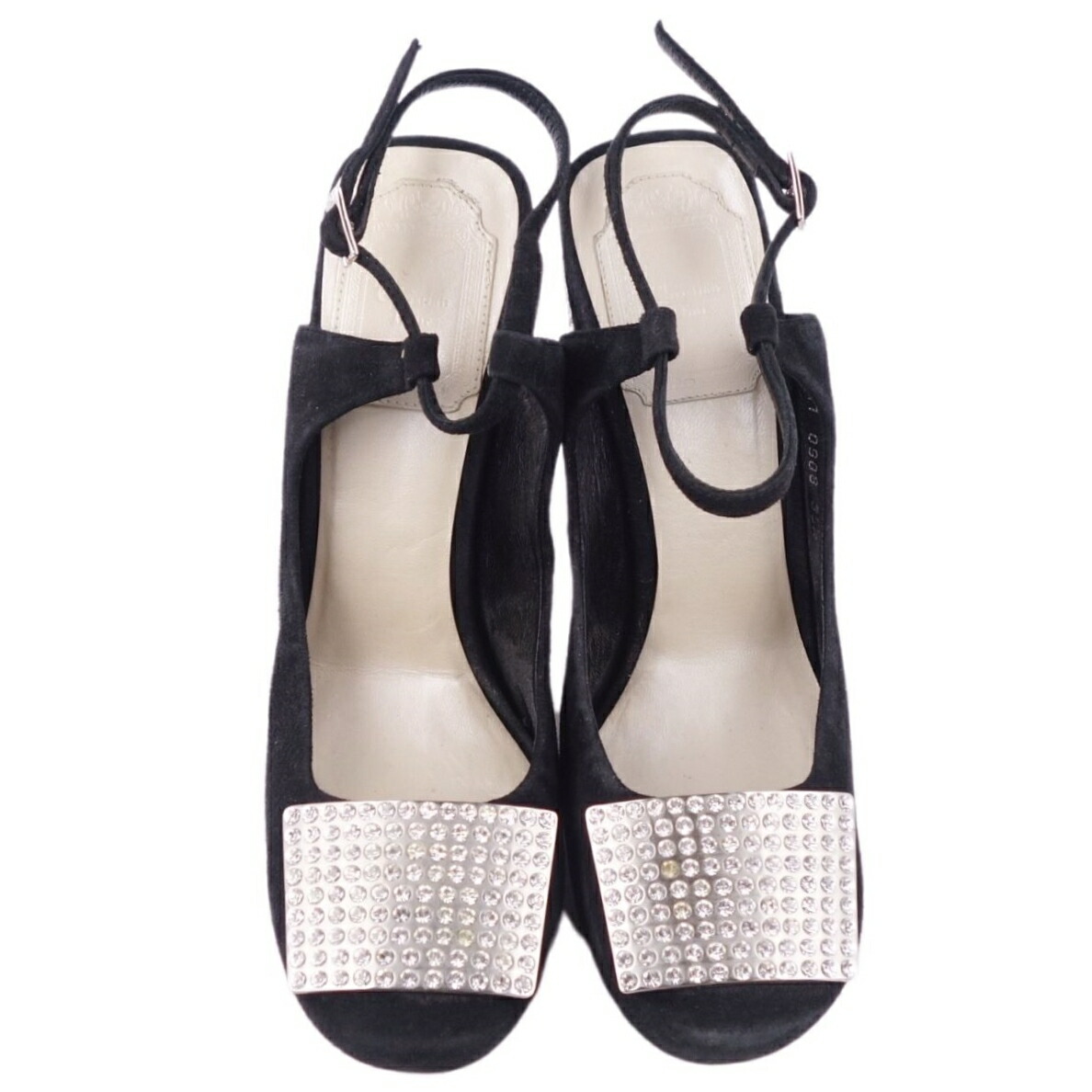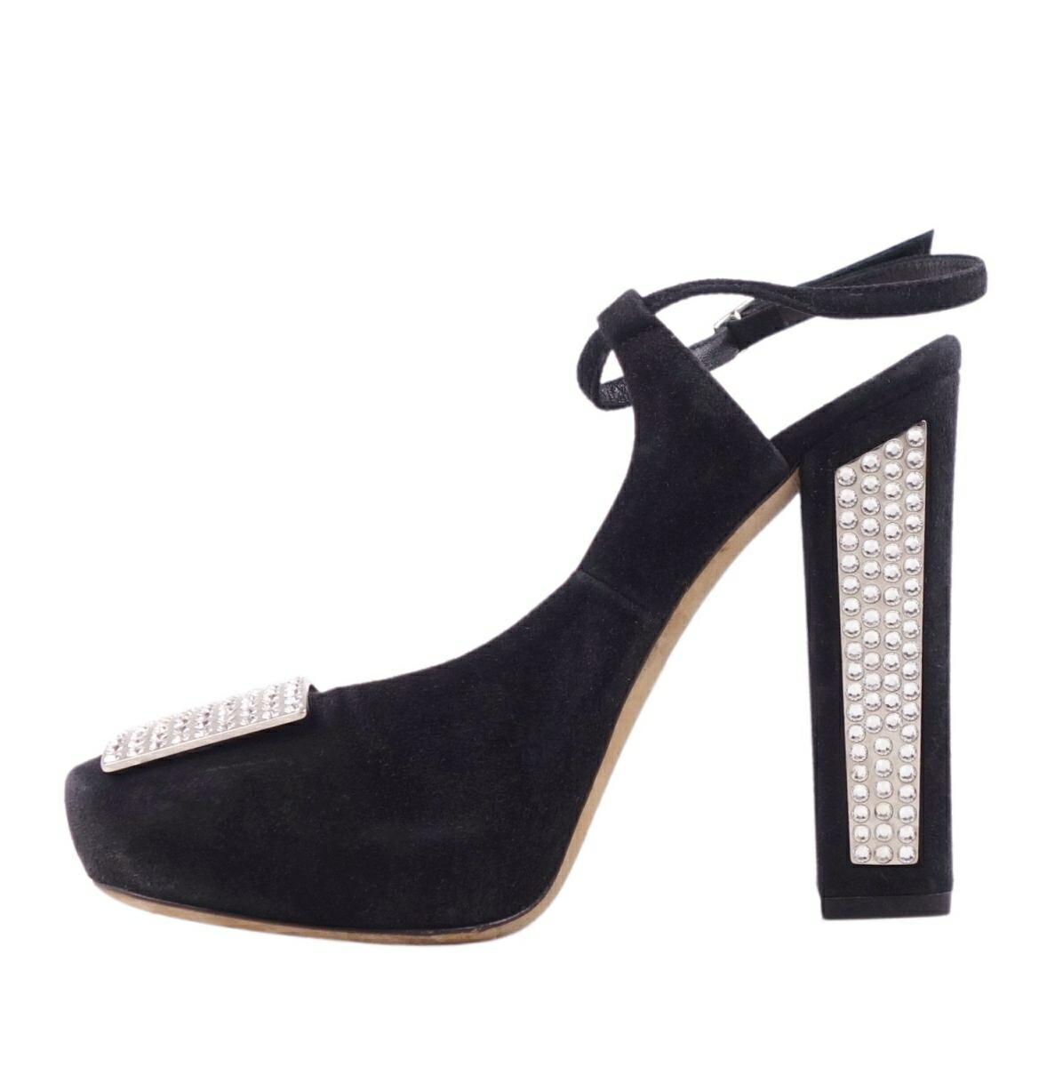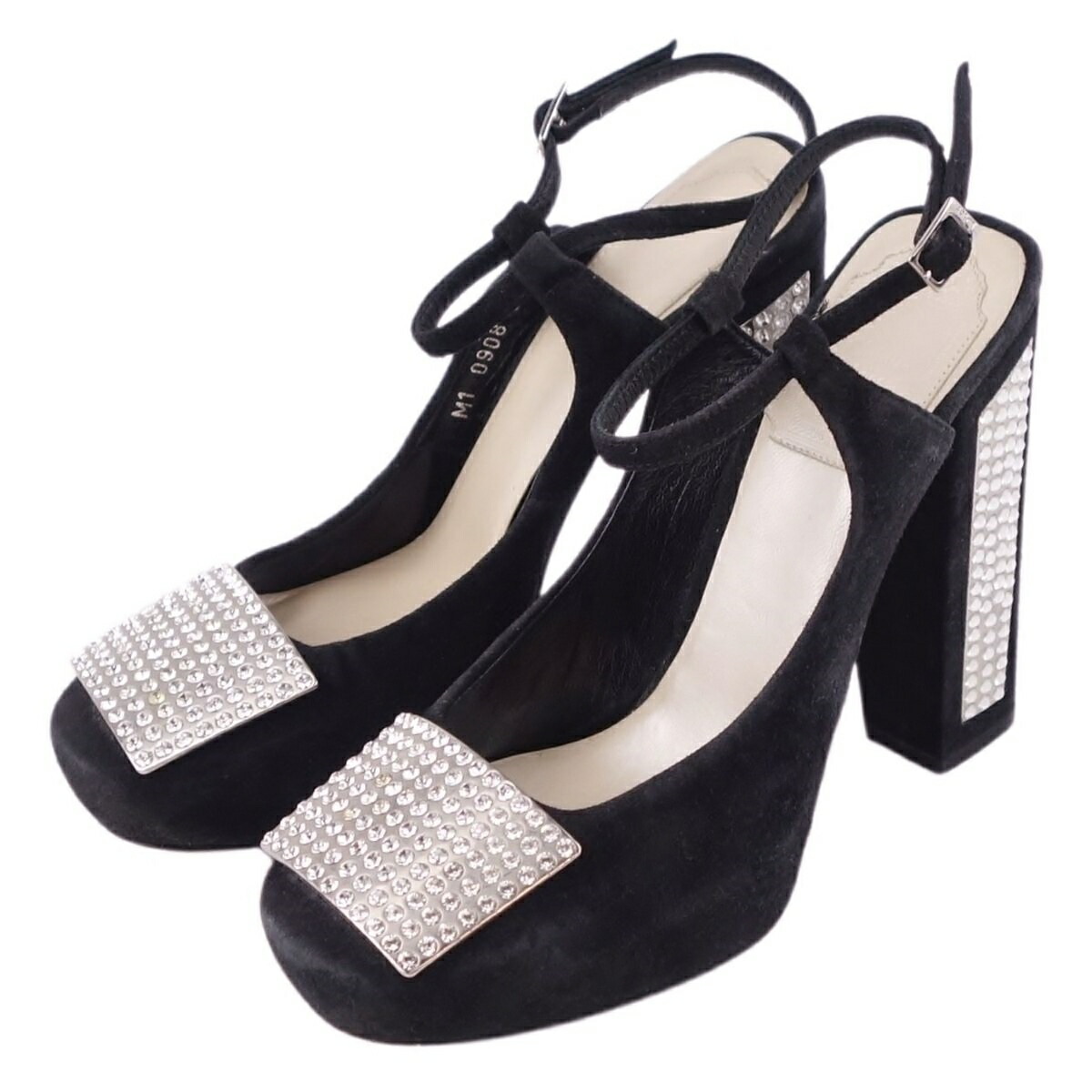 クリスチャンディオール Christian Dior パンプス プラットフォーム スウェード レザー ラインストーン レディース ヒール シューズ ブラック 黒 サイズ35.5(22.5cm相当)