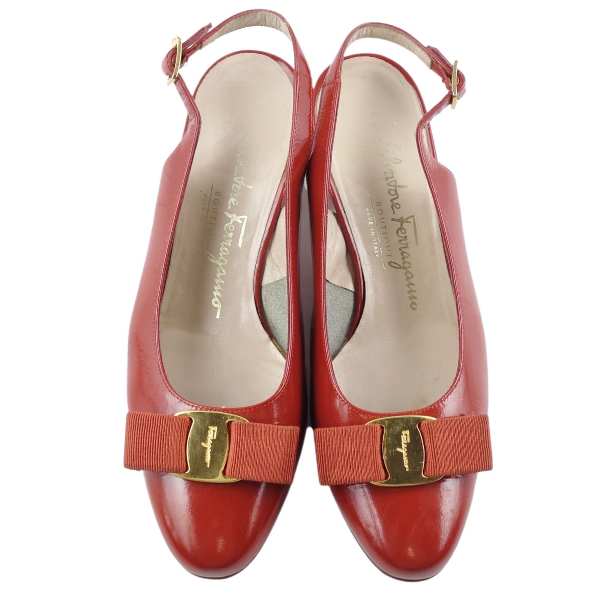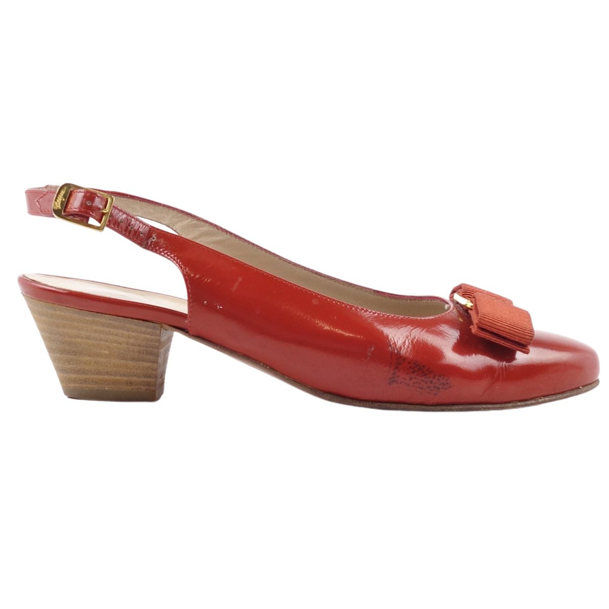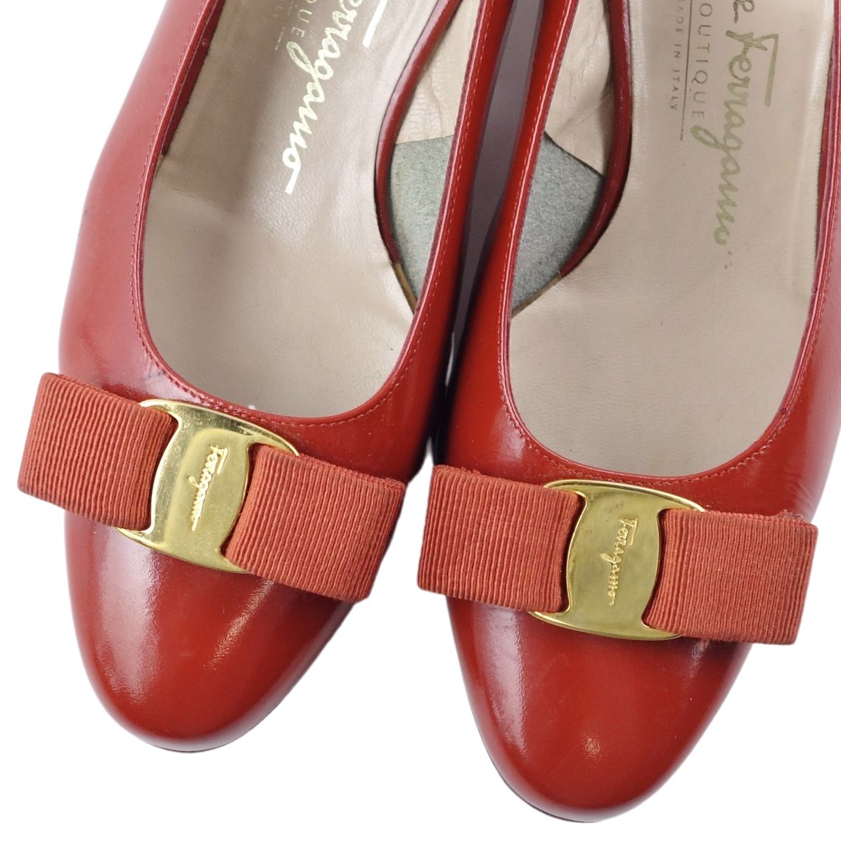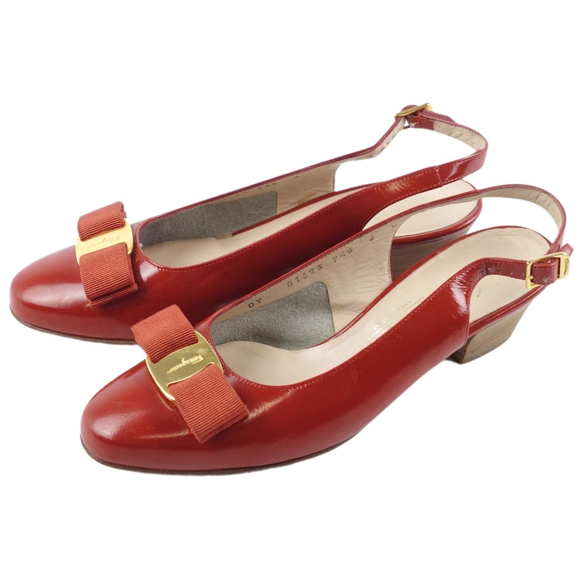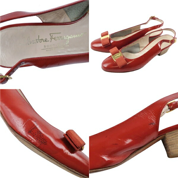 商品名 サルヴァトーレ フェラガモ Salvatore Ferragamo シューズ パンプス ヴァラ バックストラップ レディース パテント レザー イタリア製 6C(23.5cm相当) オレンジ【中古】
