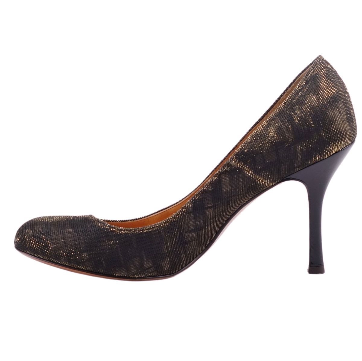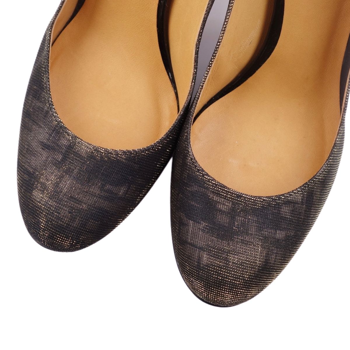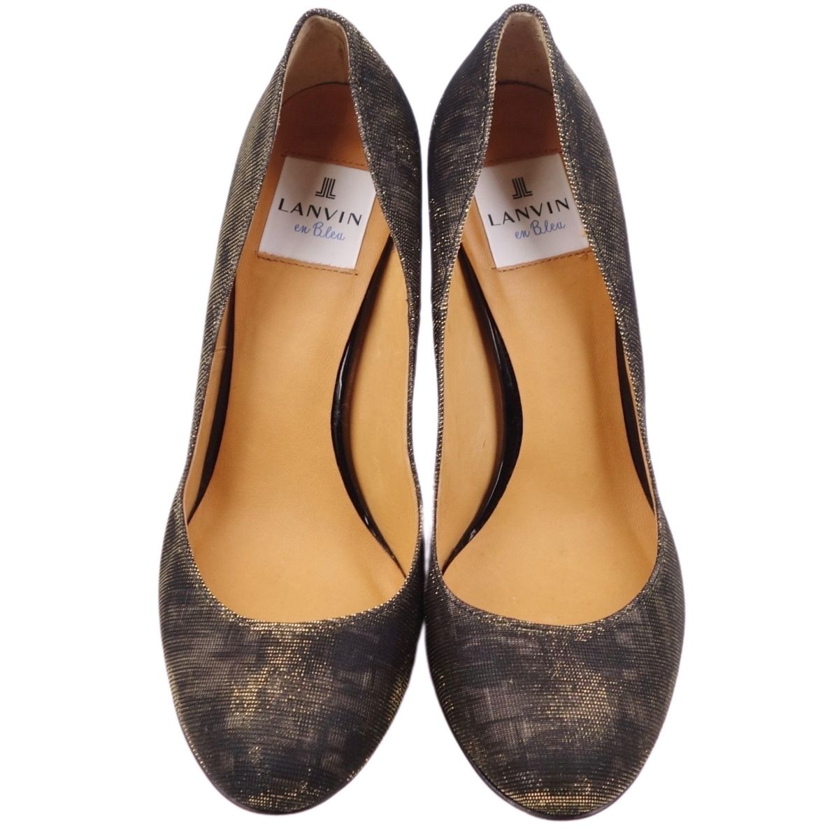 ランバンオンブルー LANVIN en Bleu パンプス ラウンドトゥ キャンバス レザー レディース シューズ ヒール イタリア製 ゴールド/カーキ サイズ24cm
