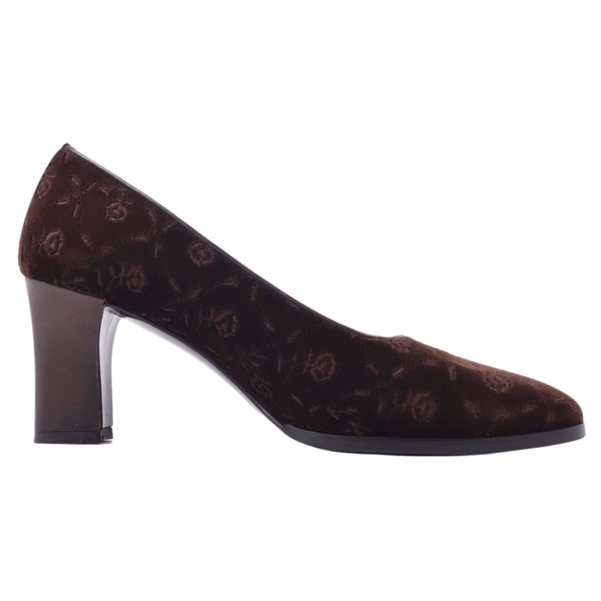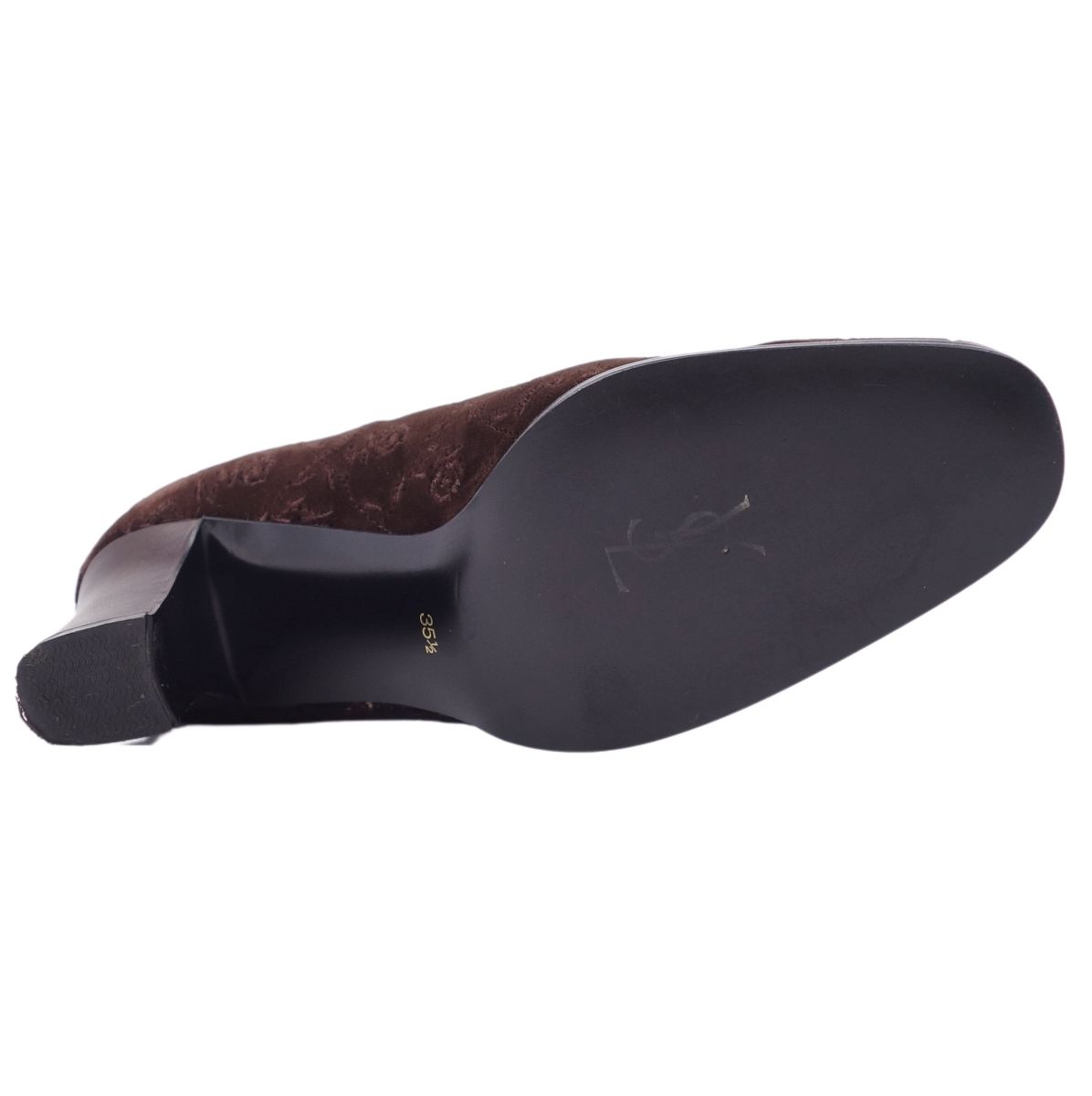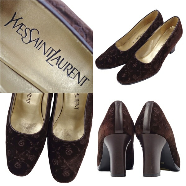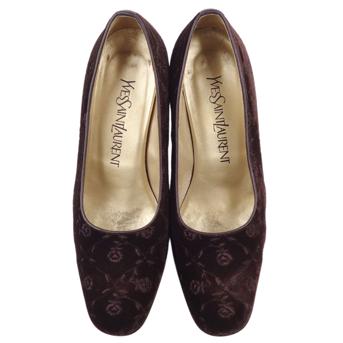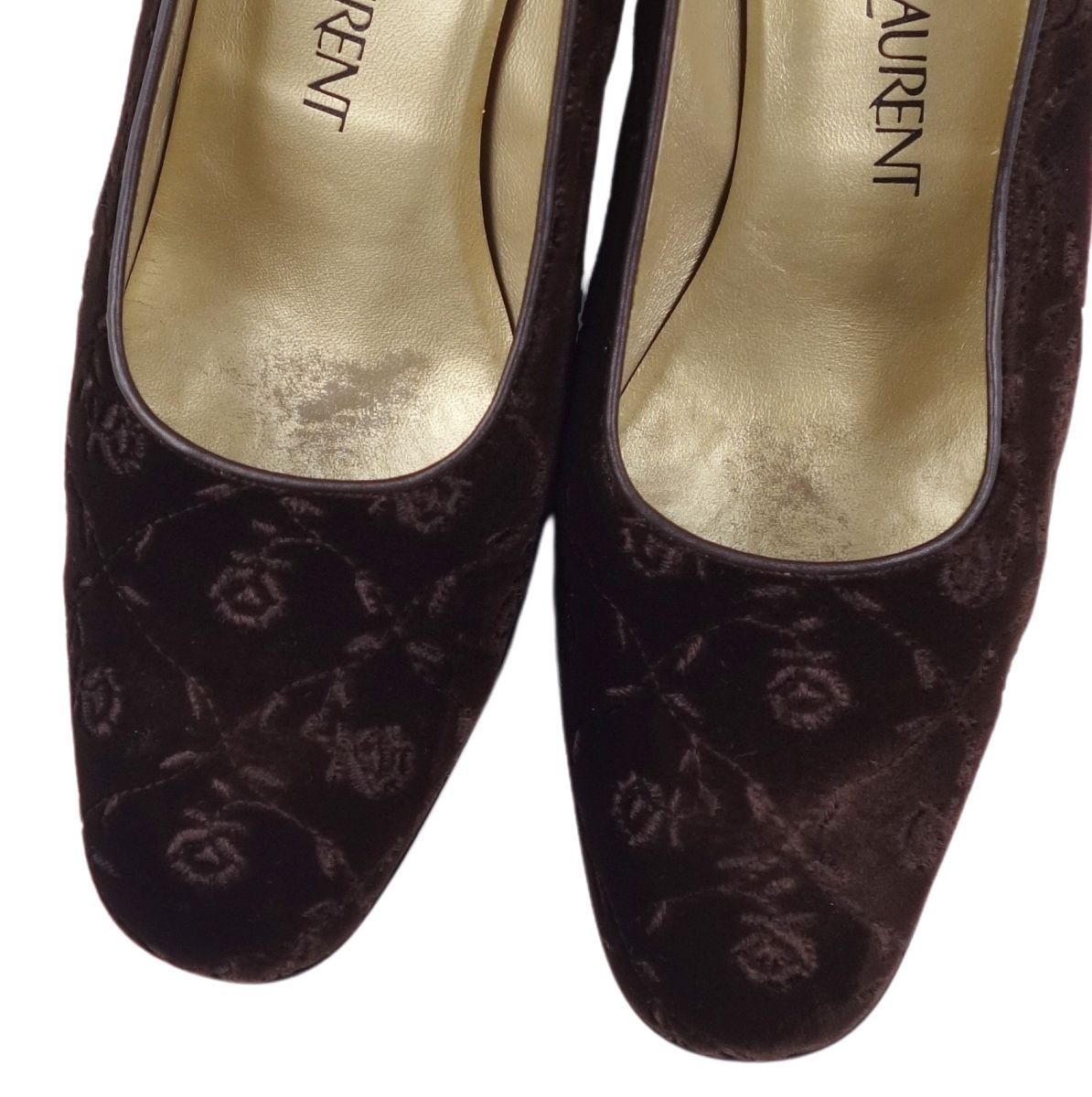 Vintage イヴサンローラン Yves Saint Laurent シューズ パンプス ベロア 花柄 刺繍 靴 レディース ブラウン サイズ35.5(22.5cm相当)