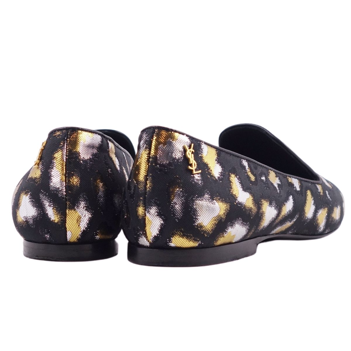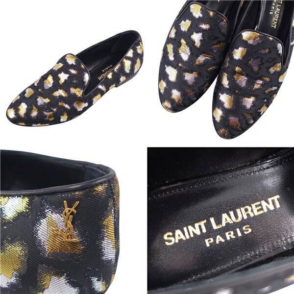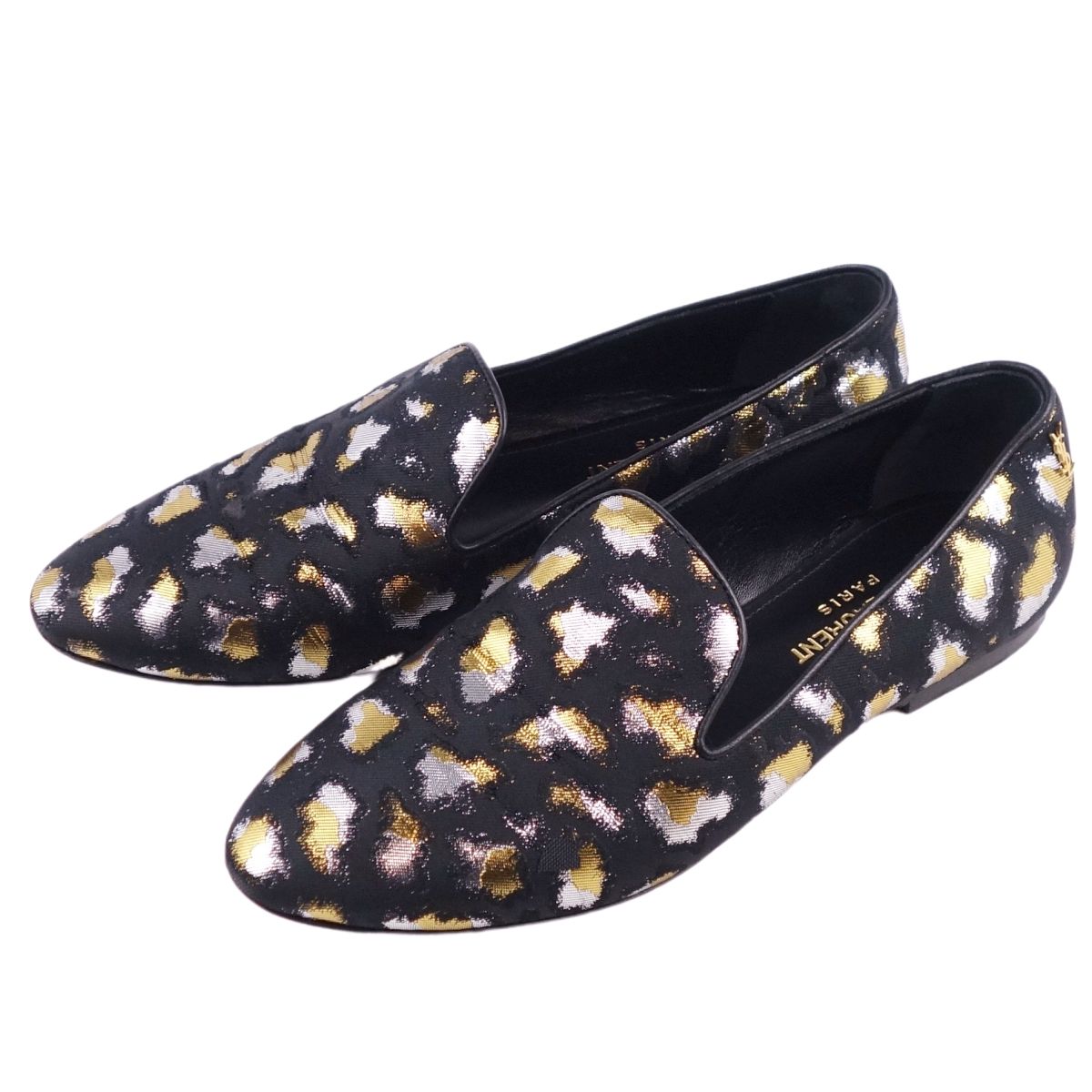 サンローラン パリ SAINT LAURENT PARIS シューズ フラット パンプス YSL ロゴ 総柄 キャンバス 靴 レディース ブラック(ゴールド/シルバー) サイズ38(25cm相当)