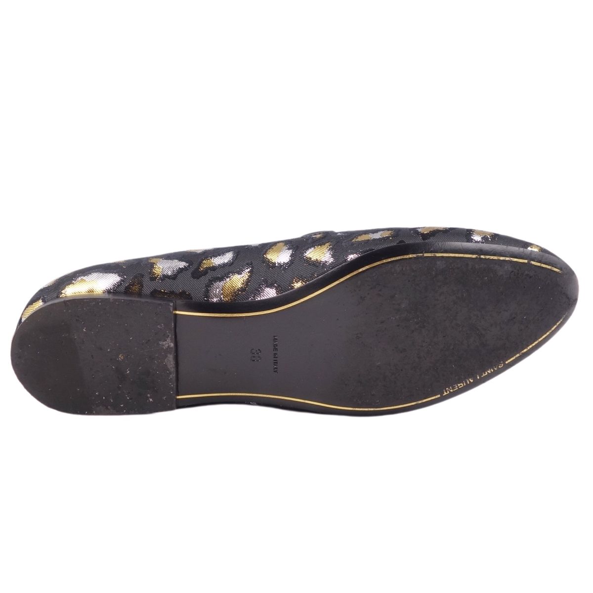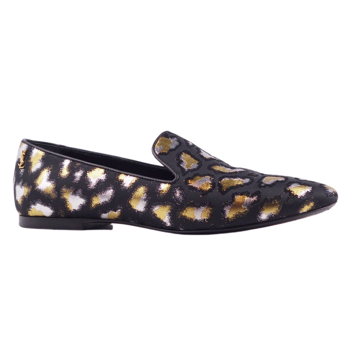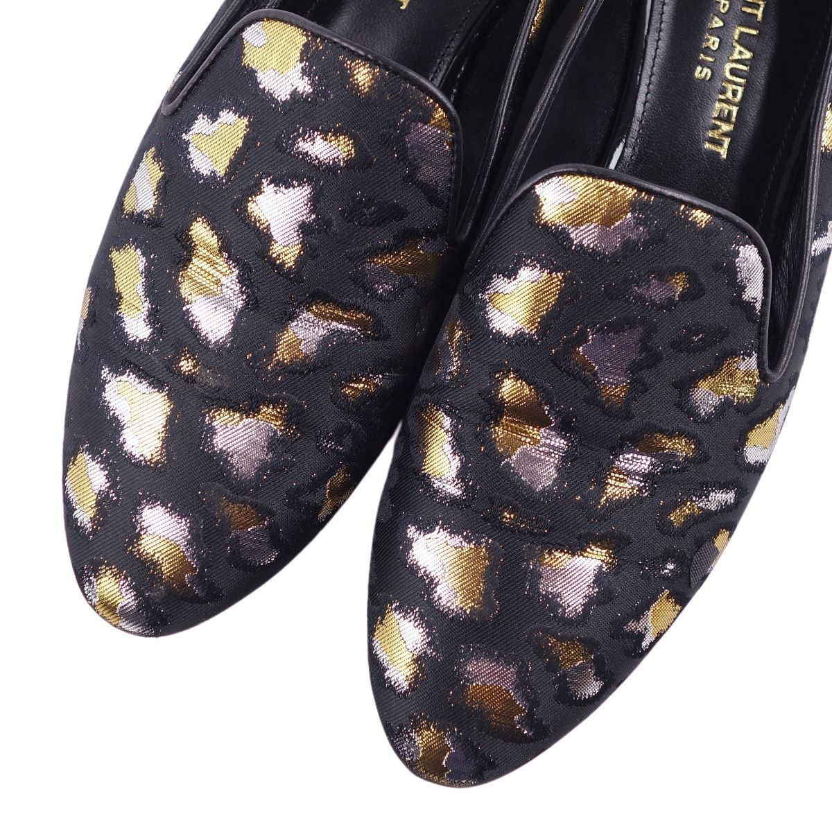 サンローラン パリ SAINT LAURENT PARIS シューズ フラット パンプス YSL ロゴ 総柄 キャンバス 靴 レディース ブラック(ゴールド/シルバー) サイズ38(25cm相当)
