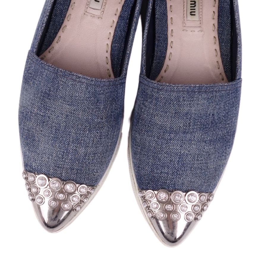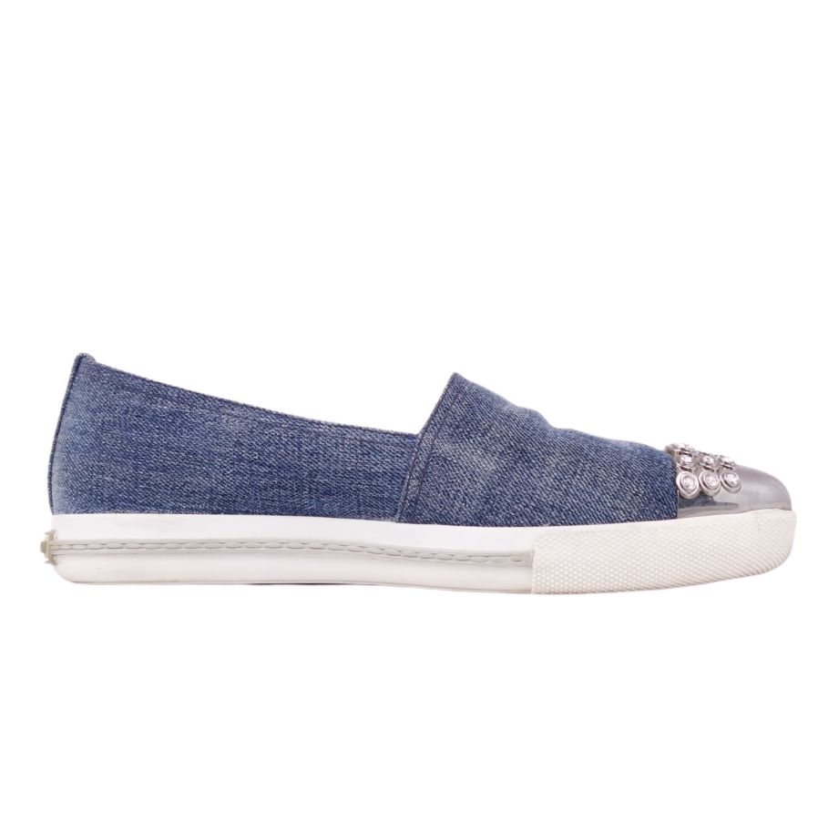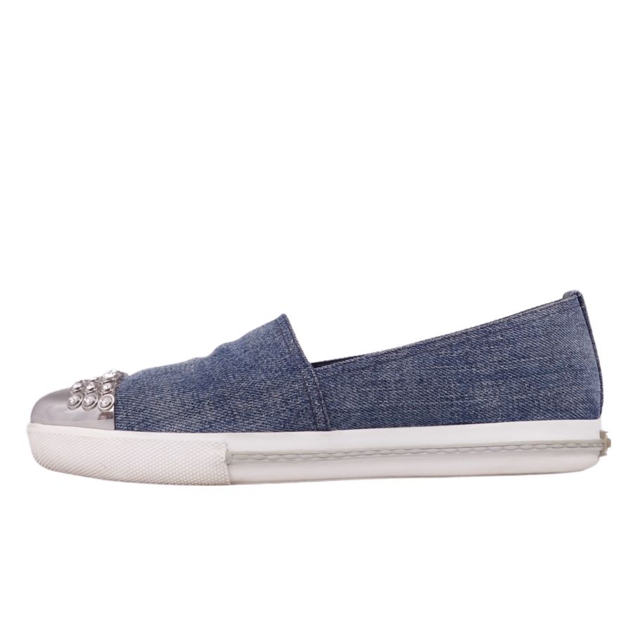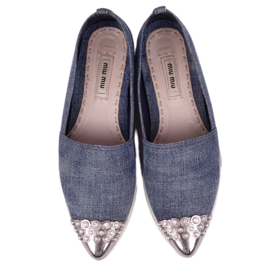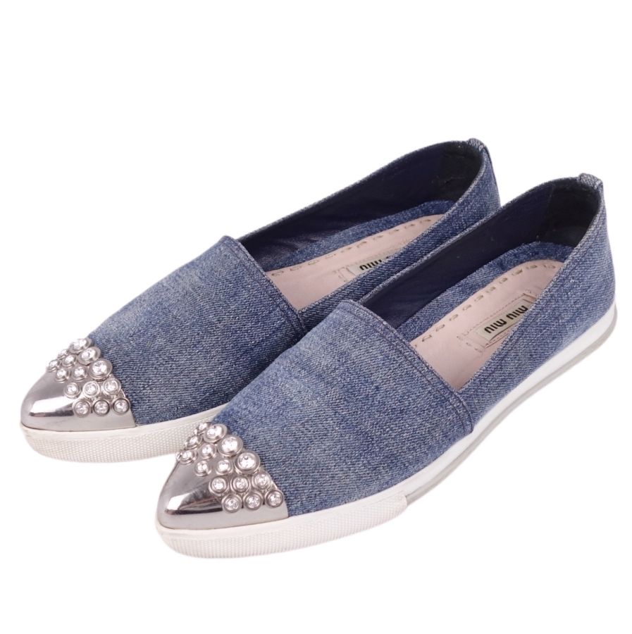 ミュウミュウ miu miu スリッポン スニーカー デニム ビジュー装飾 シューズ 靴 レディース インディゴブルー サイズ36(23cm相当)