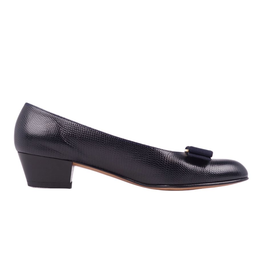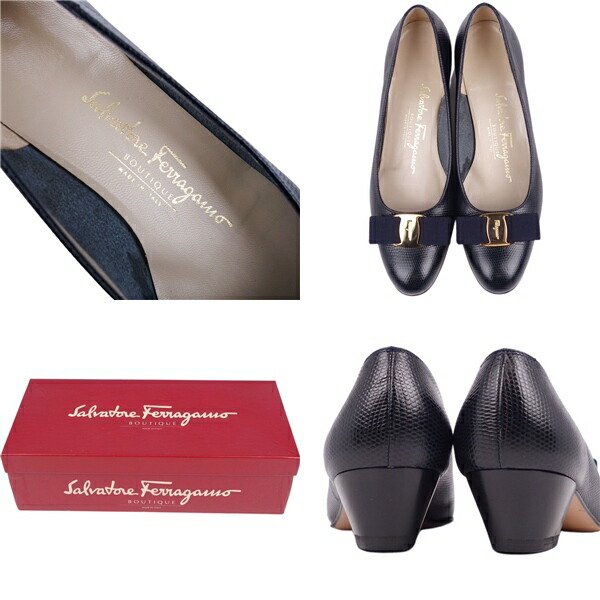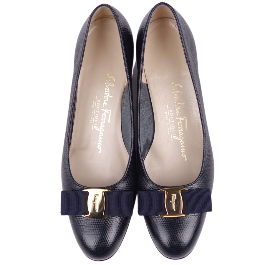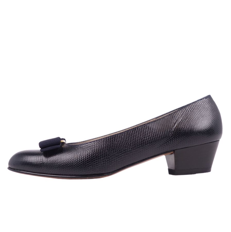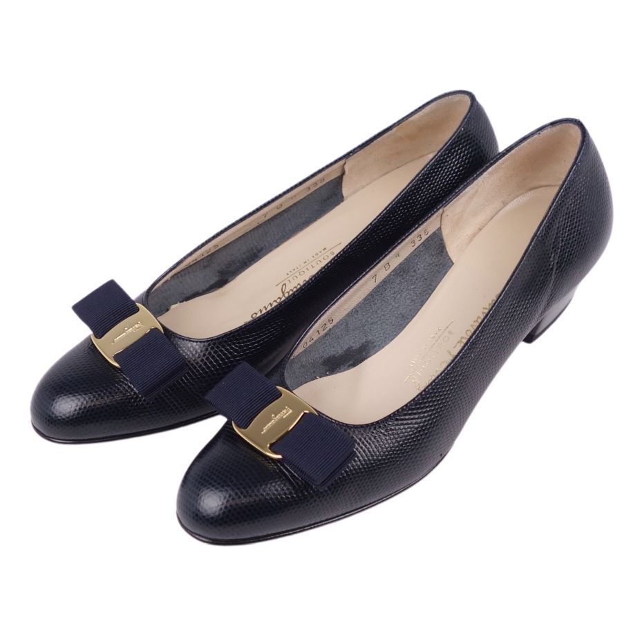 サルヴァトーレ フェラガモ Salvatore Ferragamo パンプス ヴァラ リザード型押し ヒール シューズ 靴 レディース ネイビー サイズ7B(24.5cm相当)