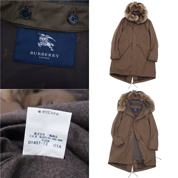 商品名 【極美品】バーバリー ロンドン BURBERRY LONDON コート ロングコート モッズコート ラクーンファー ライナー付き アウター メンズ 42(S相当) ブラウン メンズコート【中古】