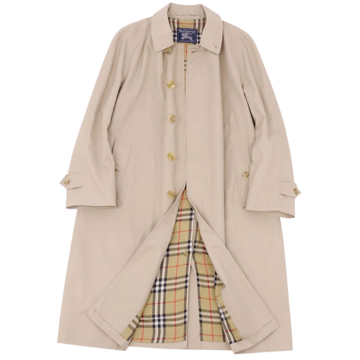 Vintage バーバリー Burberrys コート 英国製 ステンカラーコート バルマカーンコート メンズ コットン 裏チェック アウター 古着 ベージュ サイズ48REG(M相当)