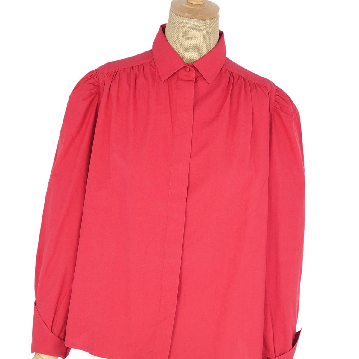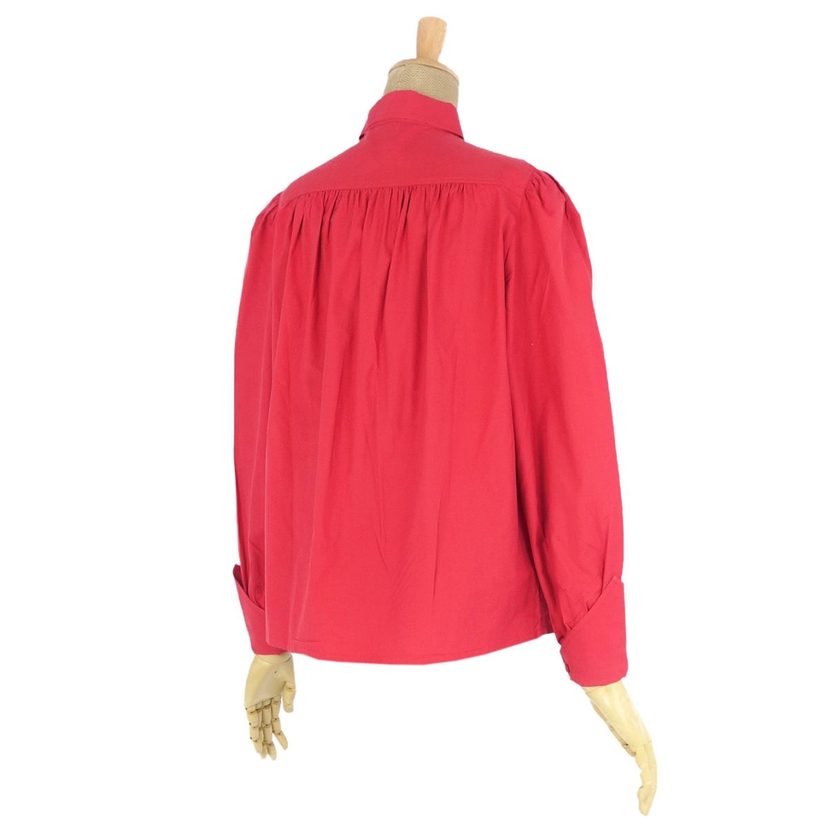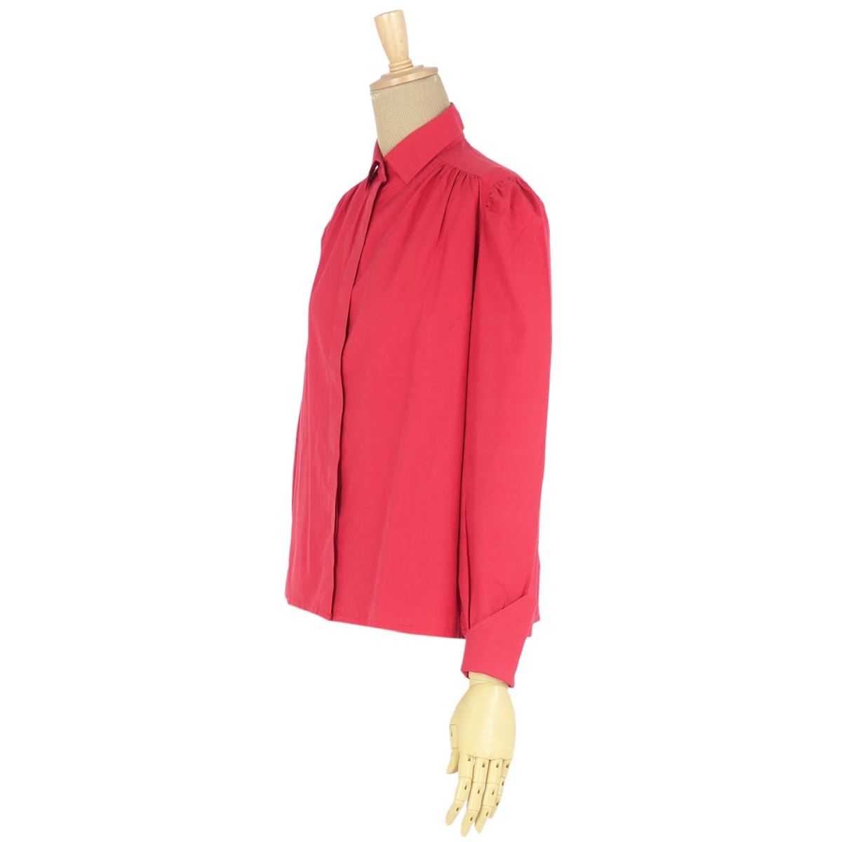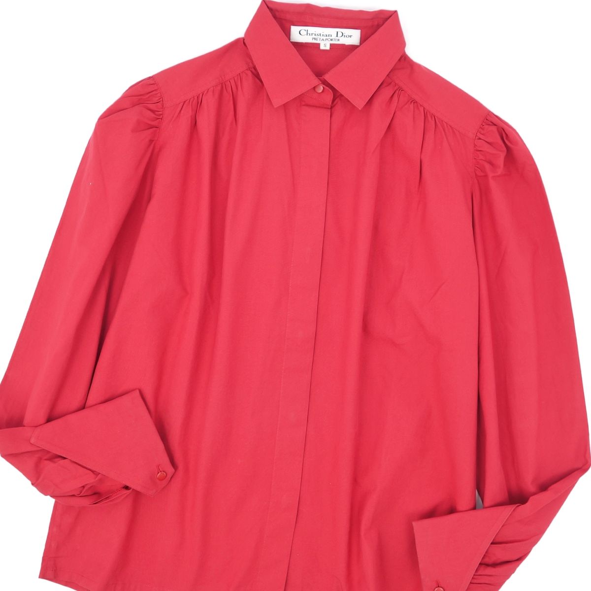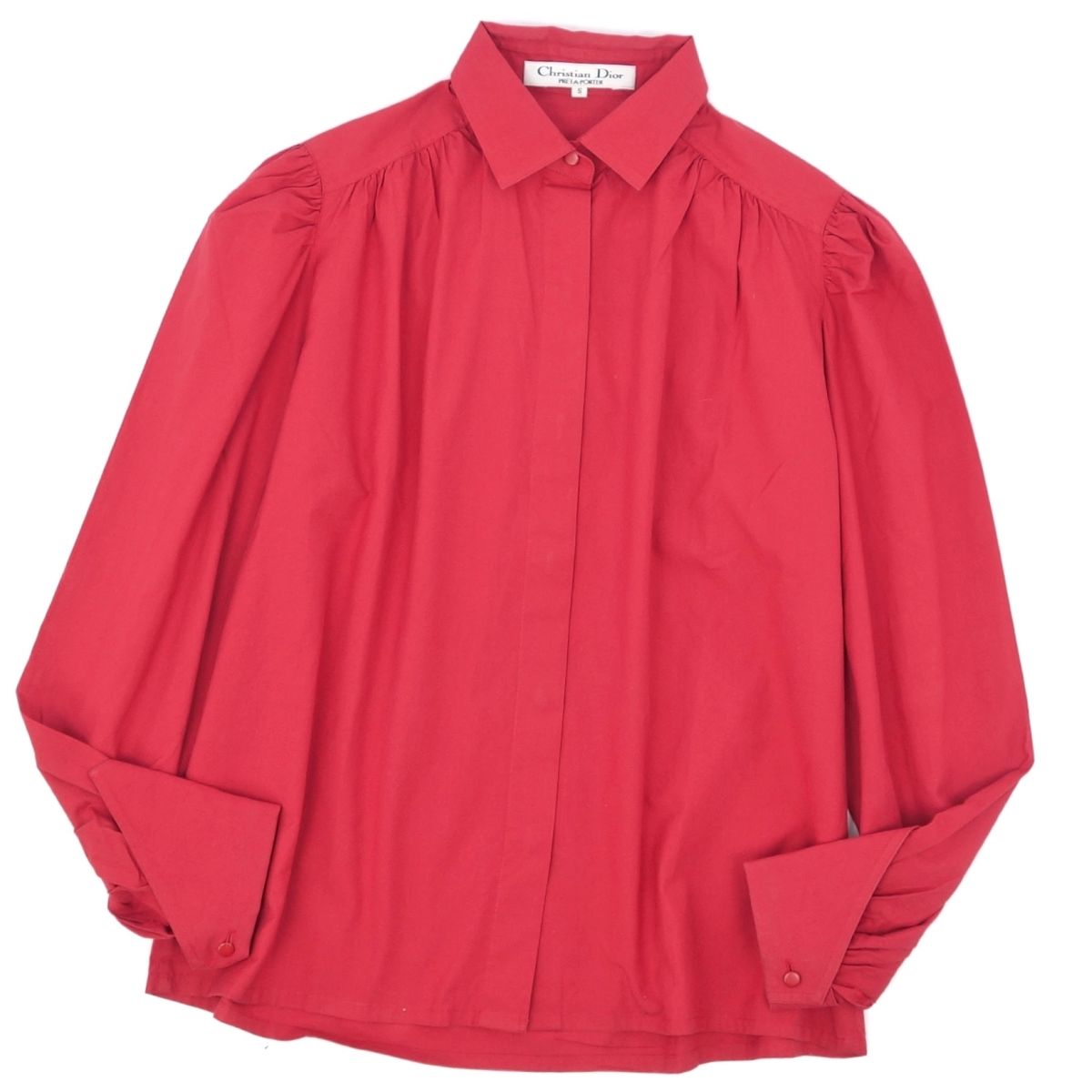 Vintage クリスチャンディオール Christian Dior コットン シャツ ブラウス ギャザー トップス 長袖 ロングスリーブ レディース レッド サイズS