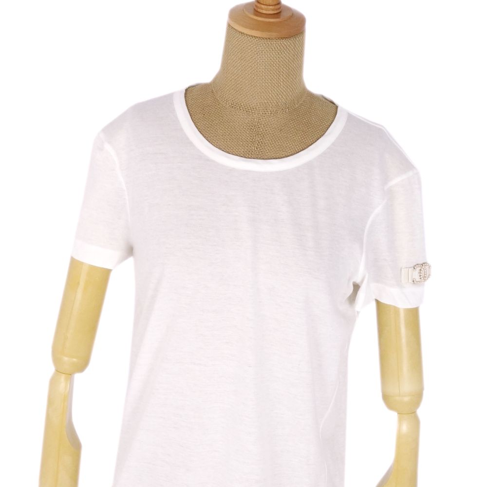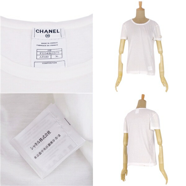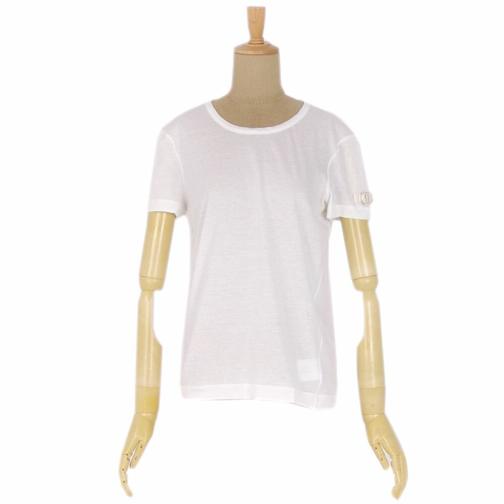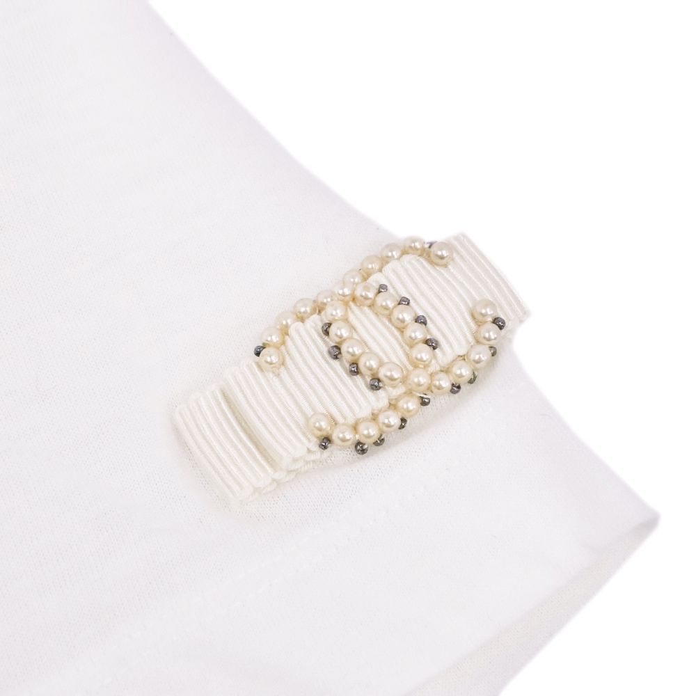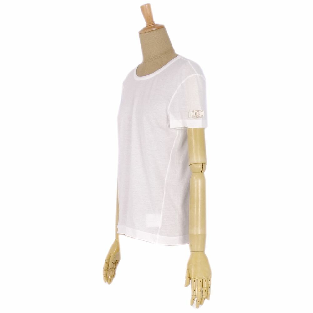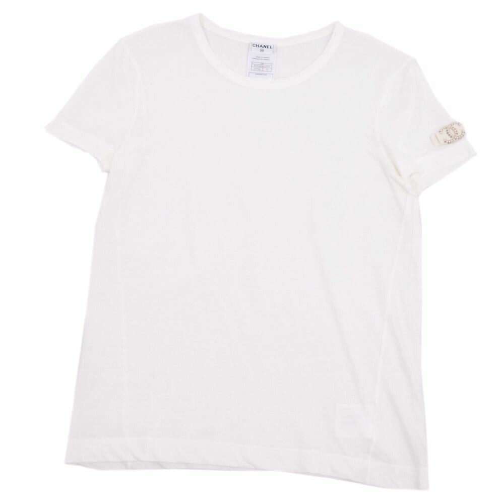 【美品】シャネル CHANEL 09P フェイクパール ココマーク Tシャツ カットソー 36 コットン トップス レディース ホワイト レディースTシャツ フランス製【中古】