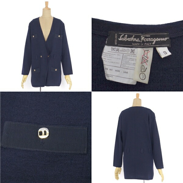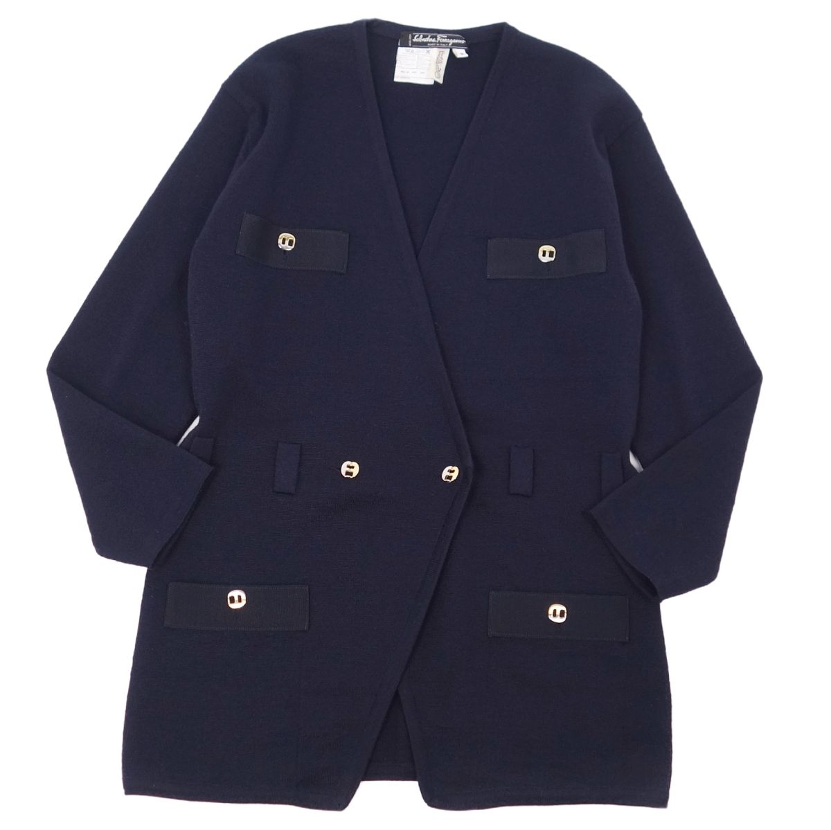 サルヴァトーレフェラガモ Salvatore Ferragamo ウール ニット カーディガン ヴァラ ボタン トップス レディース イタリア製 ネイビー サイズS