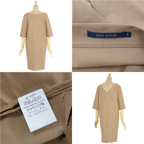 【美品】ソフィードール SOFIE D’HOORE コットン ワンピース トップス 五分袖 34(S~M相当) ベージュ ハーフスリーブ【中古】