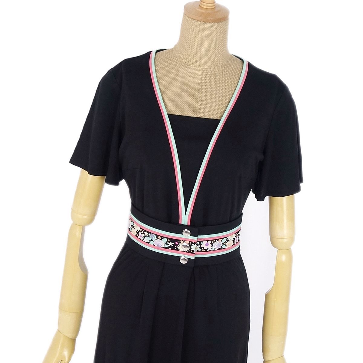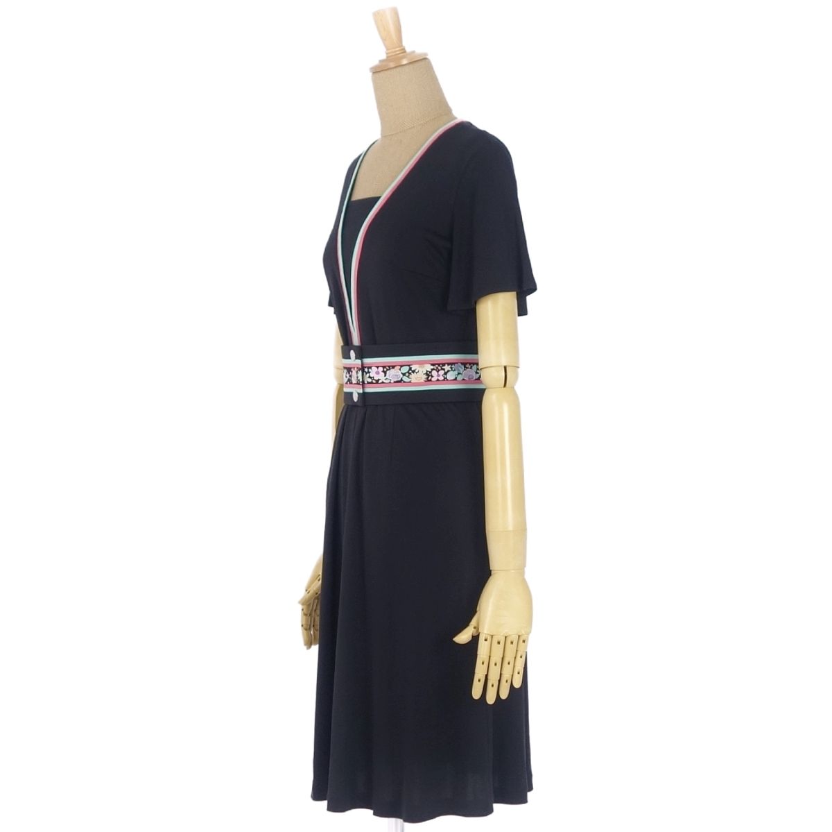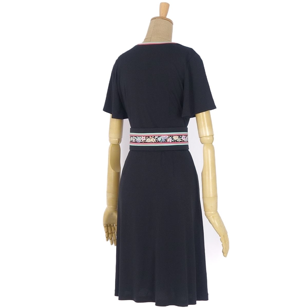 商品名 【美品】レオナール LEONARD FASHION ベルト付き 花柄 半袖 ワンピース ジャージー トップス レディース 1(S相当) ブラック レディースワンピース【中古】