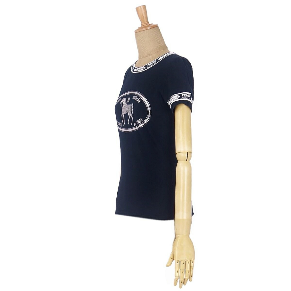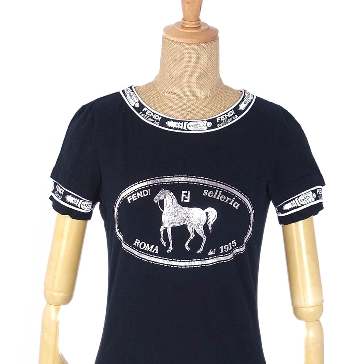 フェンディ FENDI プリント Tシャツ カットソー トップス レディース ジャガード イタリア製 ブラック サイズ38 (Mサイズ相当)