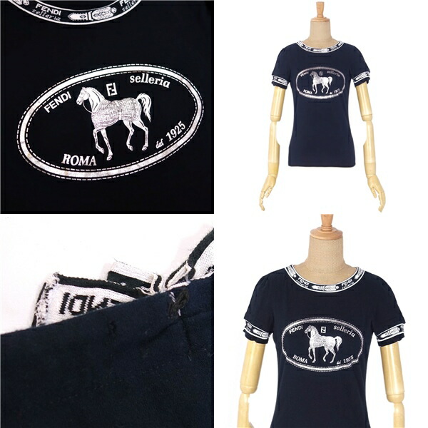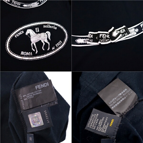| 商品名 | フェンディ FENDI セレリア FFロゴ リボン ホース柄 プリント Tシャツ カットソー トップス レディース ジャガード イタリア製 38 (Mサイズ相当) ブラック【中古】 |